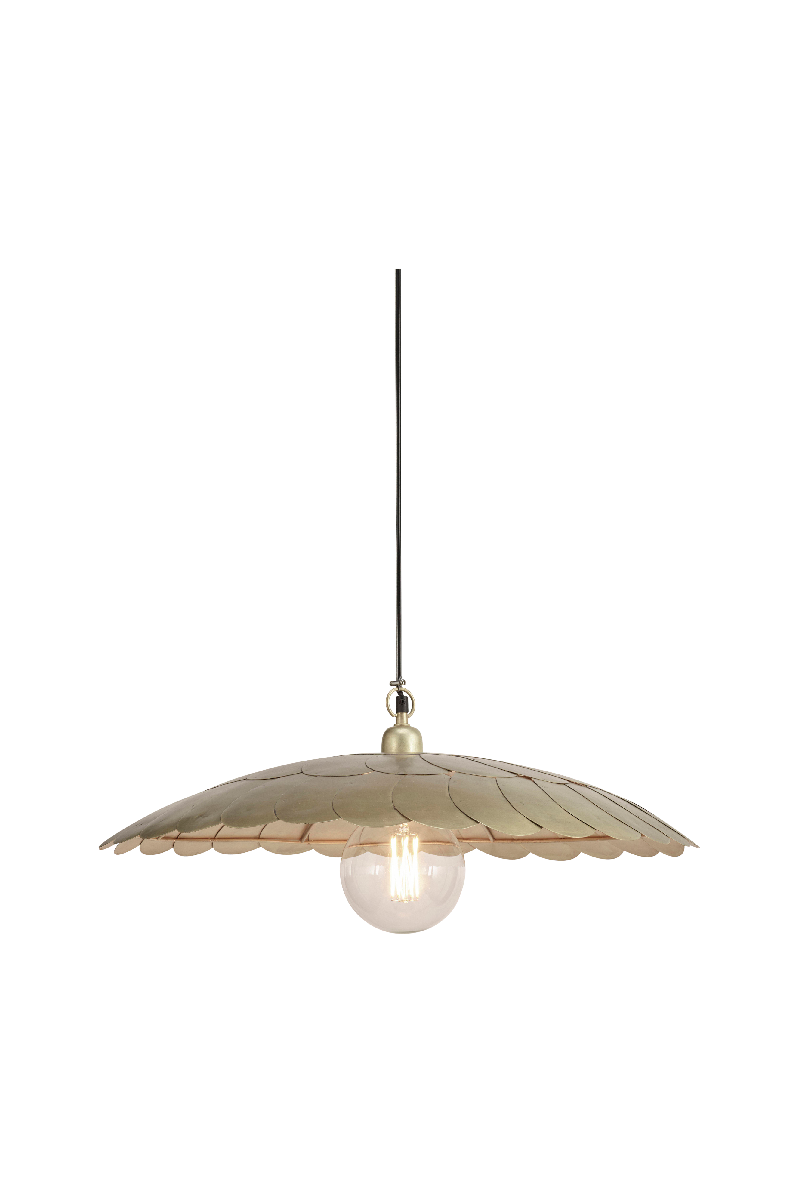 Loftlampe Petal i metal med sammensatte "blade" som skaber et fint spil i lyset. Fremstillet i hånden. Små variationer kan derfor forekomme. Højde 17 cm (ekskl. pære) og diameter 60 cm. 1 meter sort plastkabel og metalwire. Baldakin til krogophængning. E27 fatning. IP20. Loftkontakt købes separat. Pære medfølger ikke. Jord.
