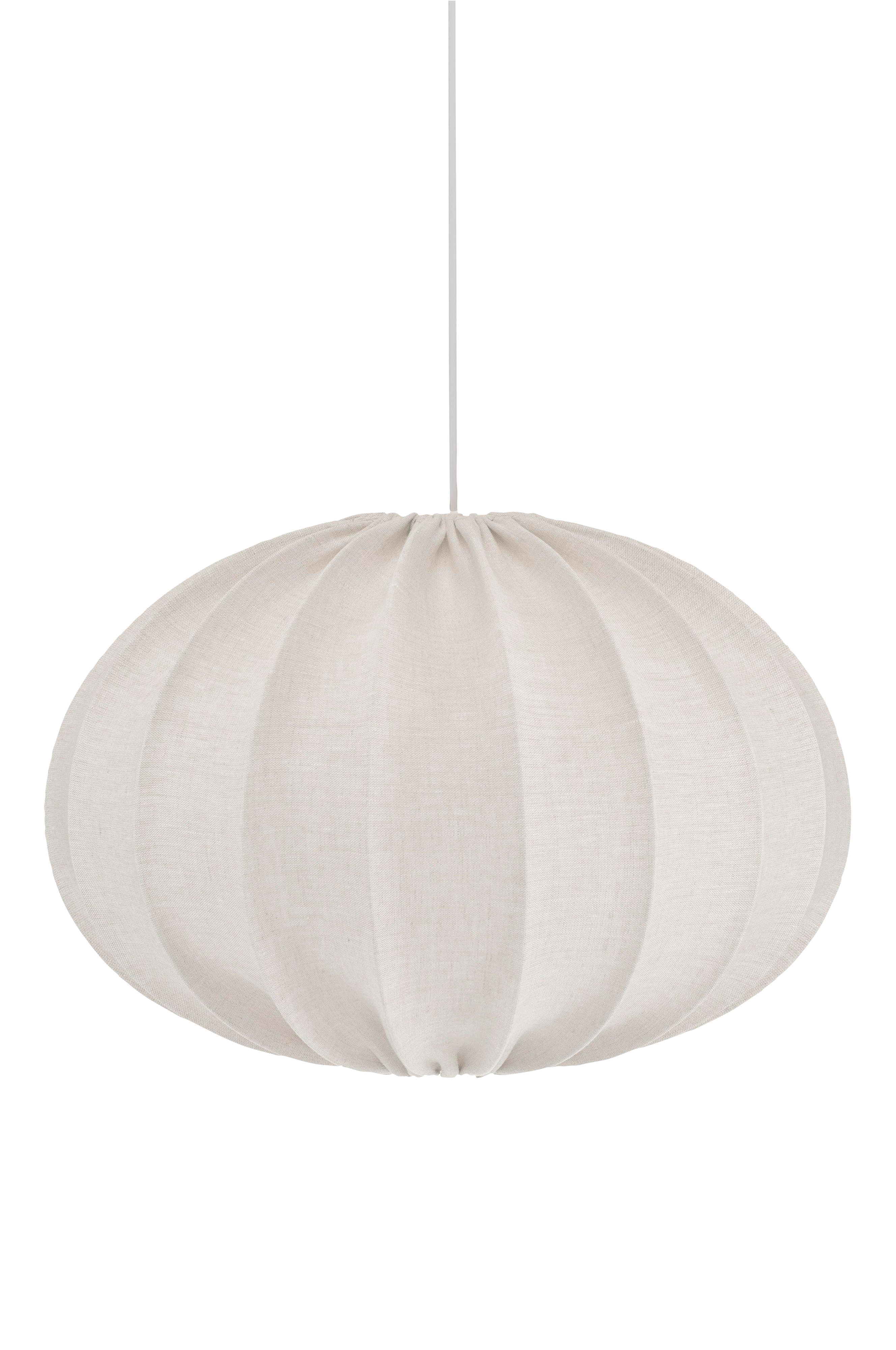 Loftskærmen Hilma giver et blødt indtryk i rummet, her klædt i et smukt hørstof med en fin struktur. Findes i flere farver og størrelser. Ledningssæt købes separat.