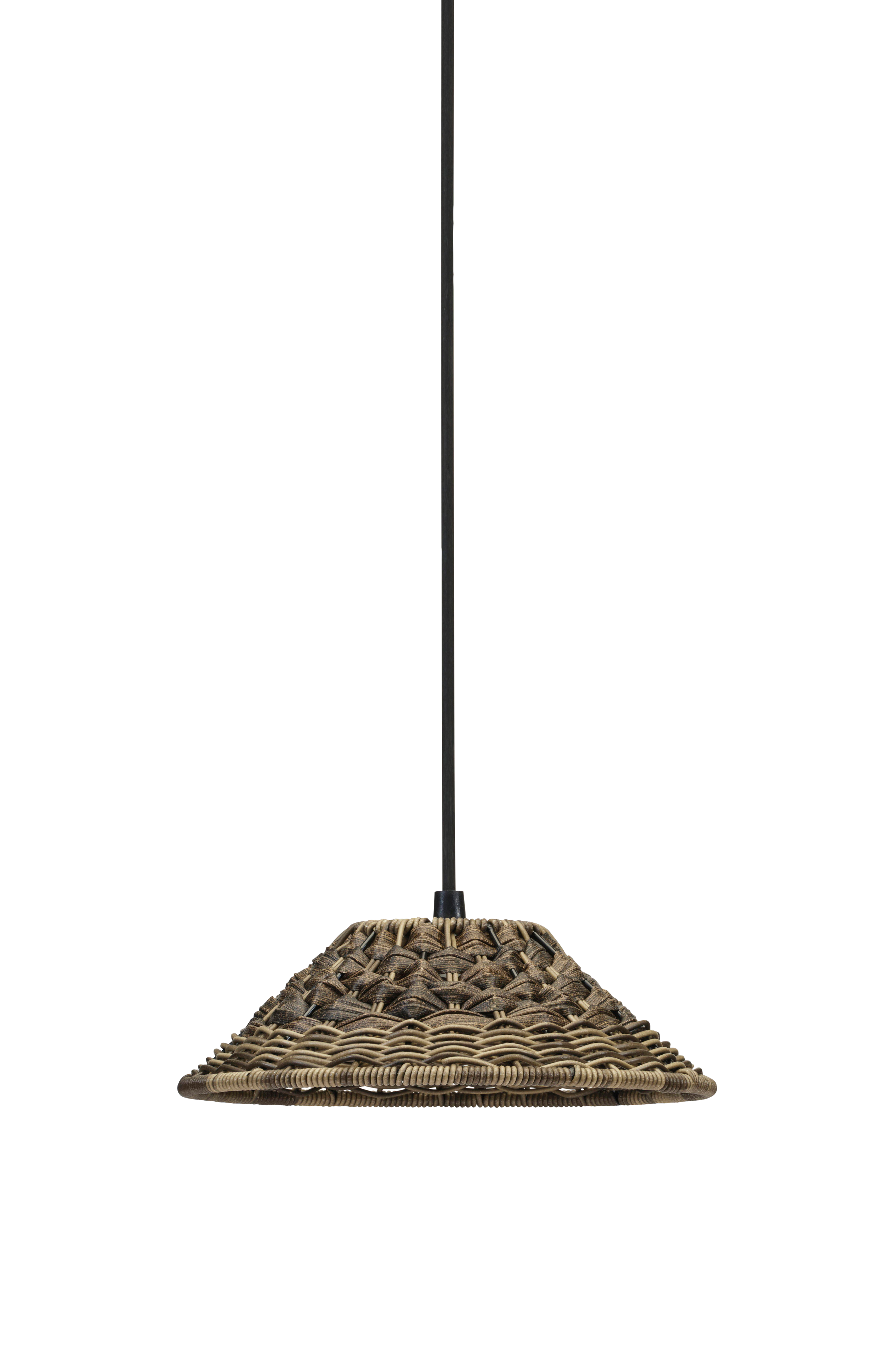 Lisen, en lille udendørsskærm med klassisk kurvefletning skaber en flot rustik blanding. Det kunstige materiale er et slidstærkt materiale, der kan modstå vejr og vind. E27 bærering foroven. Kombineres med Flex Out loftophæng til udendørs brug.