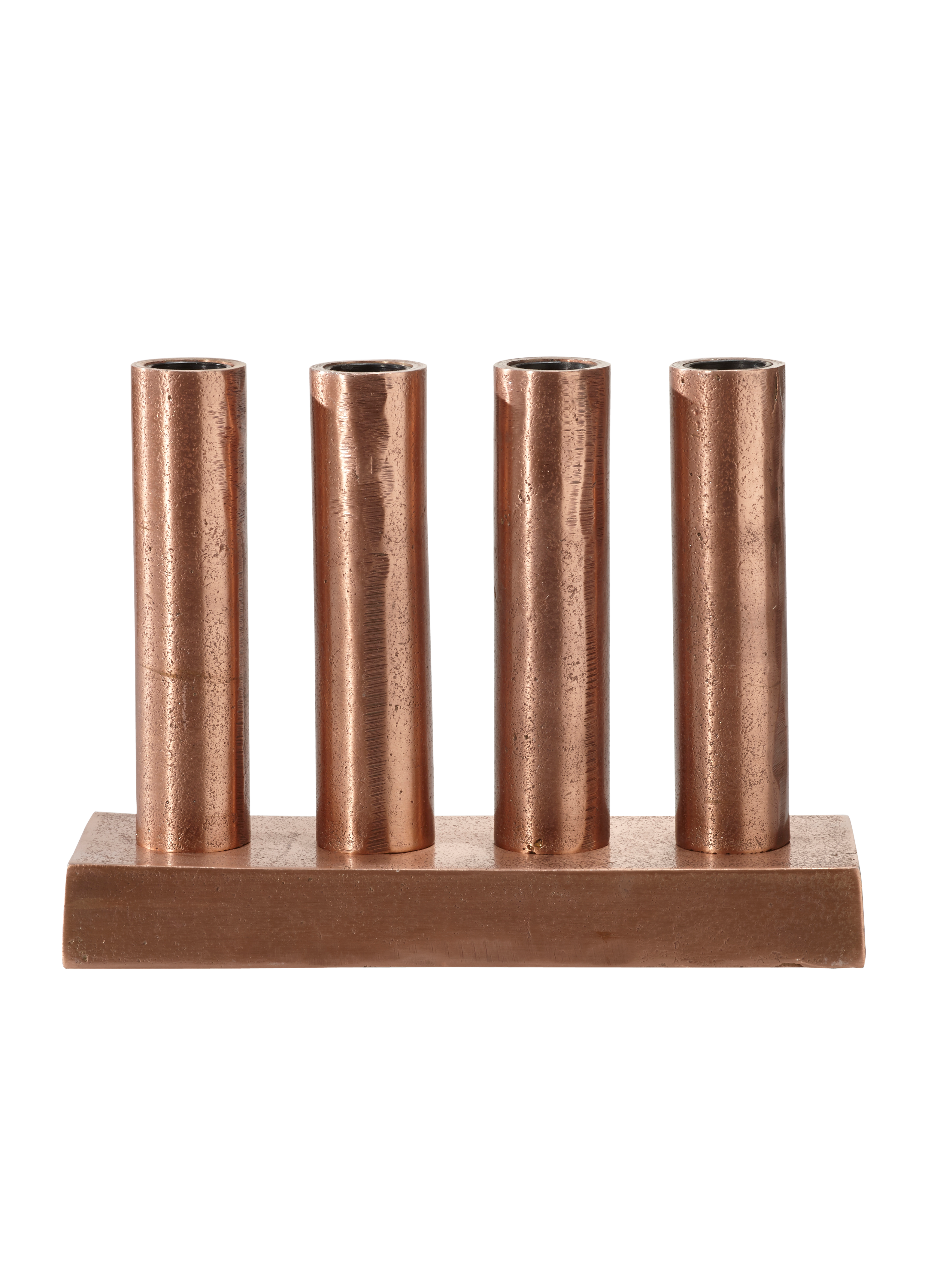 Lysestage med 4 lys. Af råmetal. 25 cm i diameterStofledning med lysdæmper. 4xE14. Maks. 40 W.