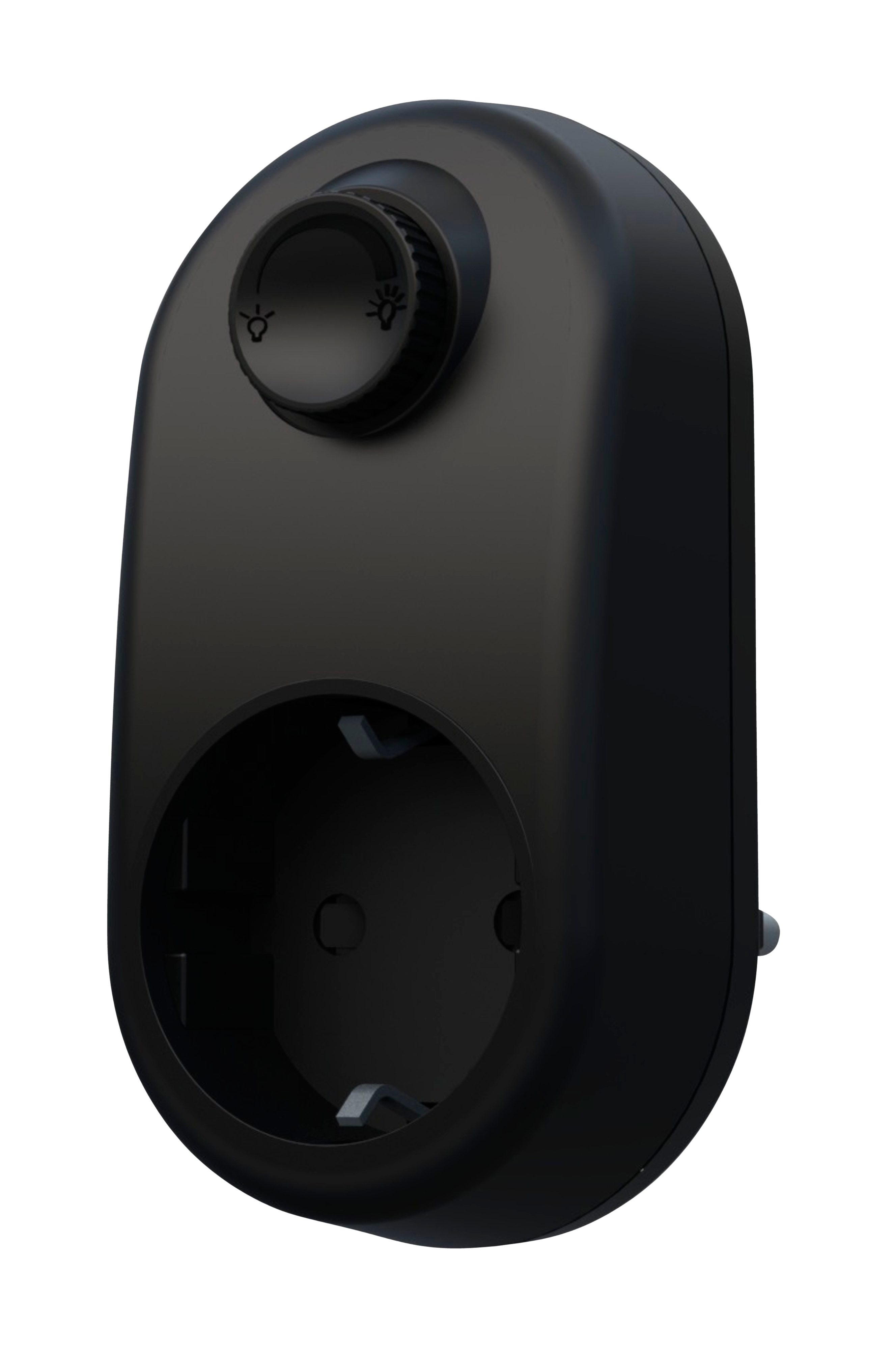 Dæmper med udviklet teknik, som dæmper de fleste lamper og pærer. Til indendørs brug. Af plast. Højde 10,5 cm, bredde 5,5 cm, dybde 7 cm. Tilpasset til LED. Sættes direkte i stikkontakten. Trinløs effektstyring.
