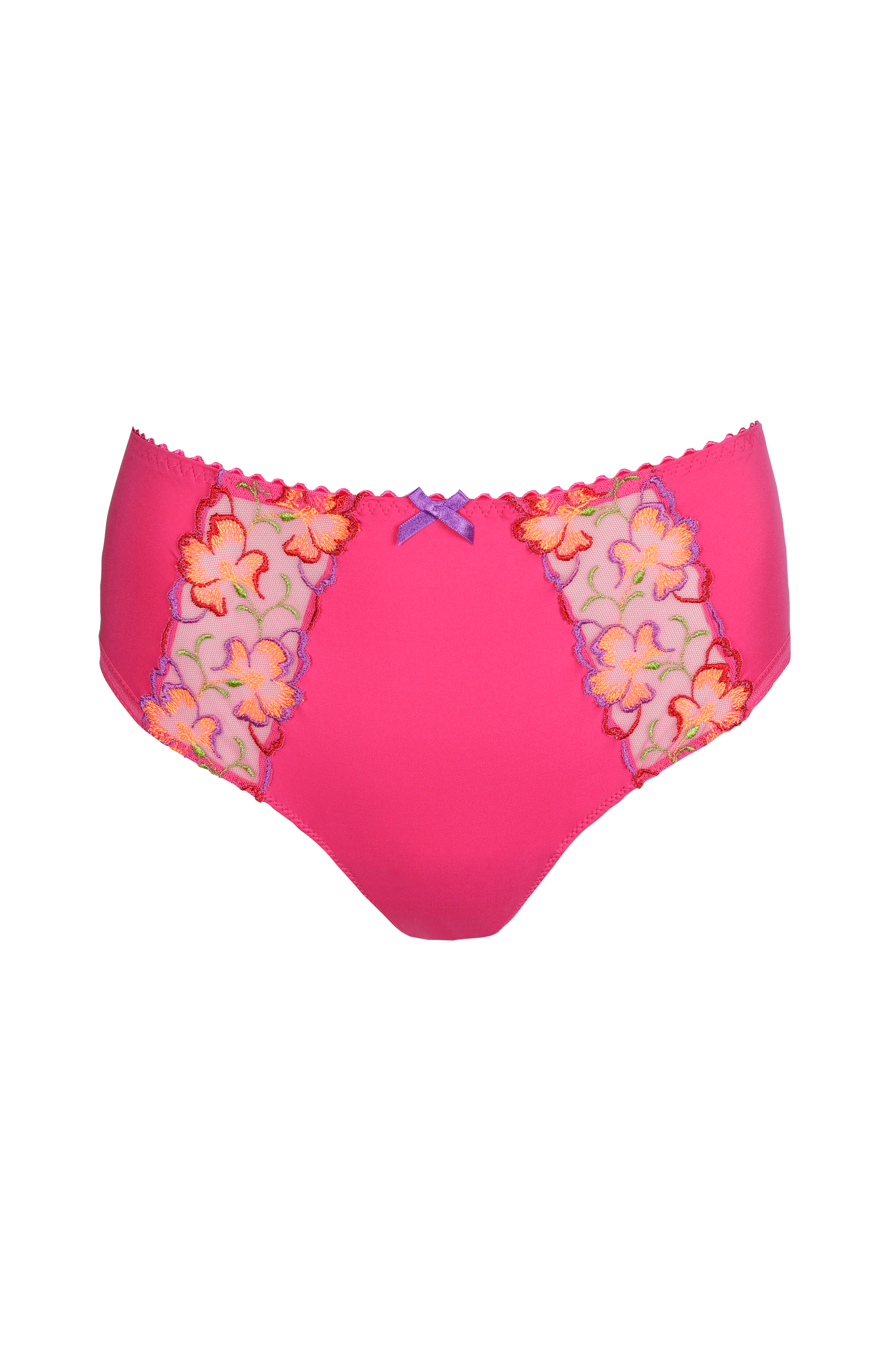 • Trusser i elastisk materiale med broderede meshdetaljer foran