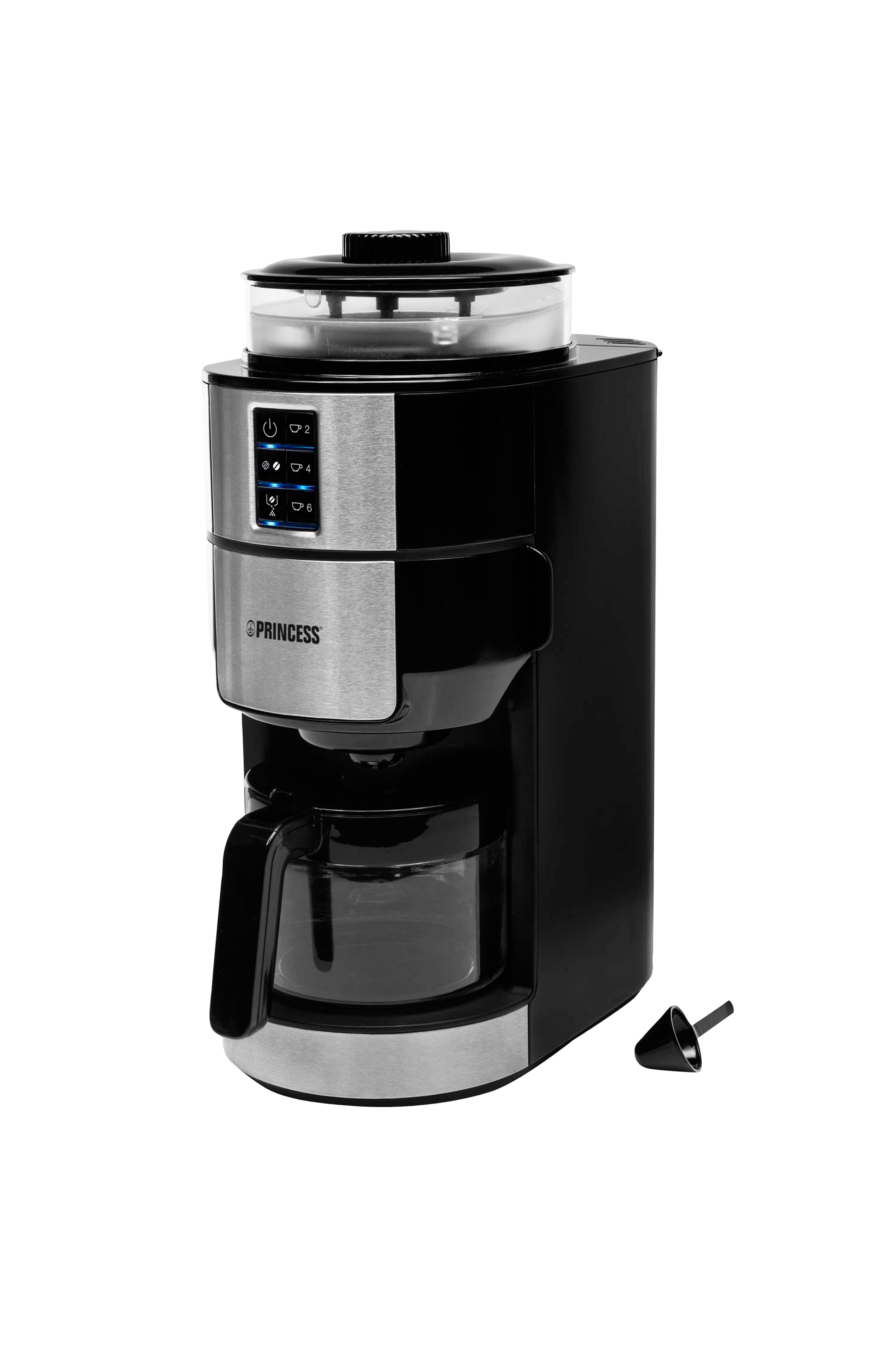Forvandl dine kaffestunder med Princess Coffee Maker 249408, som kværner hele bønner til en frisk kande eller bruger færdigmalede bønner for nemheds skyld og leverer en dejlig smag uanset hvad.