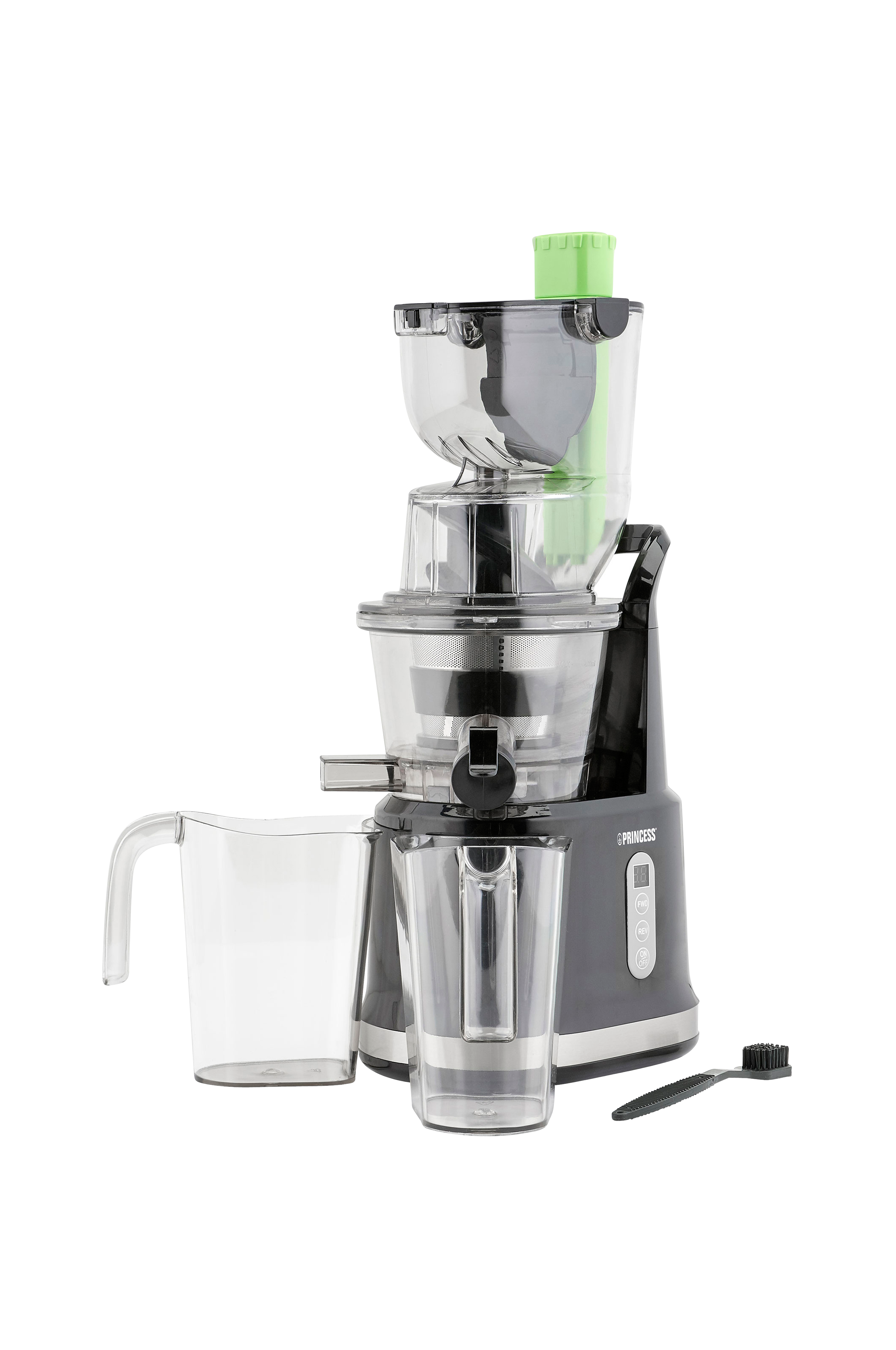 Lav udsøgt frugt- og grøntsagsjuice hurtigt og nemt med denne langsomme juicemaskine. Takket være den ekstra store åbning er det ikke nødvendigt at skære ingredienserne ud på forhånd. Motoren på 200 W og metalgear giver den nødvendige lave hastighed.