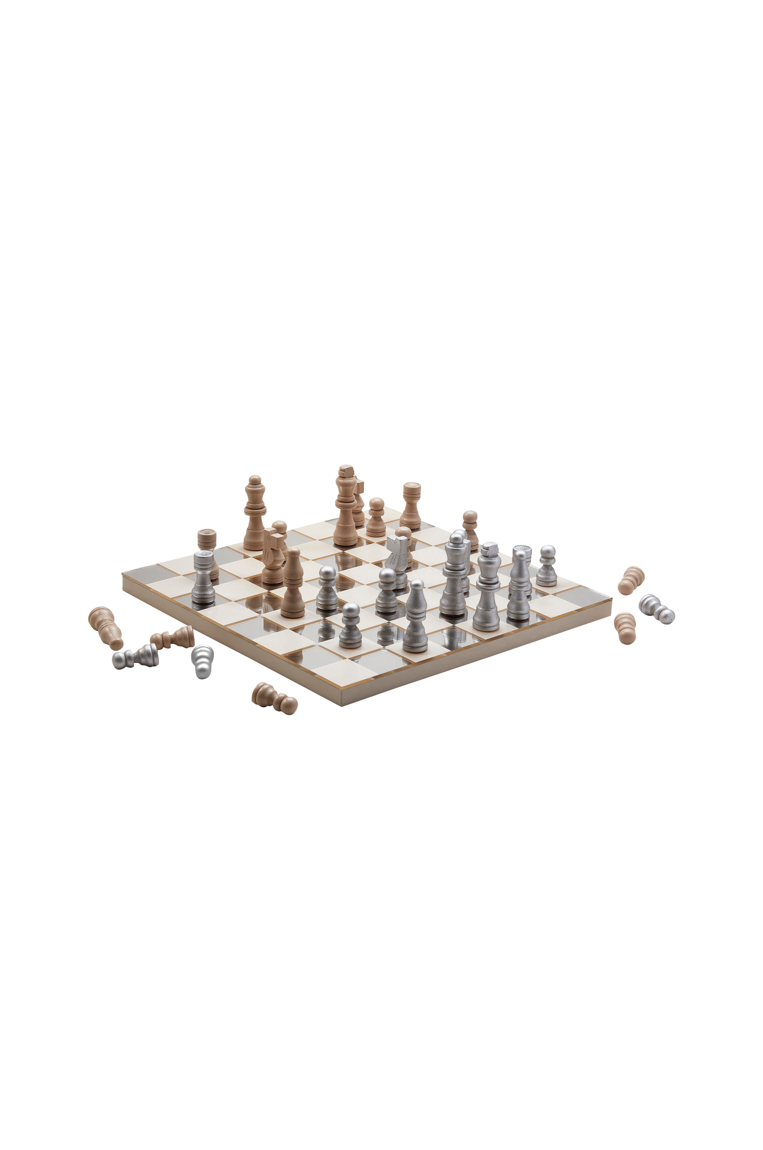 En smuk specialudgave og større variant af vores Classic Chess, nu i spektakulært spejldesign. Brikkerne og pladen er lavet af træ, og der er lagt et tyndt lag akrylspejl på pladens overflade, hvilket giver brikkerne en effektfuld genspejling. Æsken er lavet af kunspapir i høj kvalitet og er konstrueret og åbner sig som en bog, hvilket betyder, at den også passer perfekt sammen med dine kunstbøger i bogreolen. Omslaget er printet med en ternet sølvfarvet folie, som efterligner spejleffekten. Dette spil er en del af vores koncept "Coffee Table Games" og bliver et dekorativt indslag, uanset hvor du vælger at placere det. Æskestørrelse 25x25x5 cm.