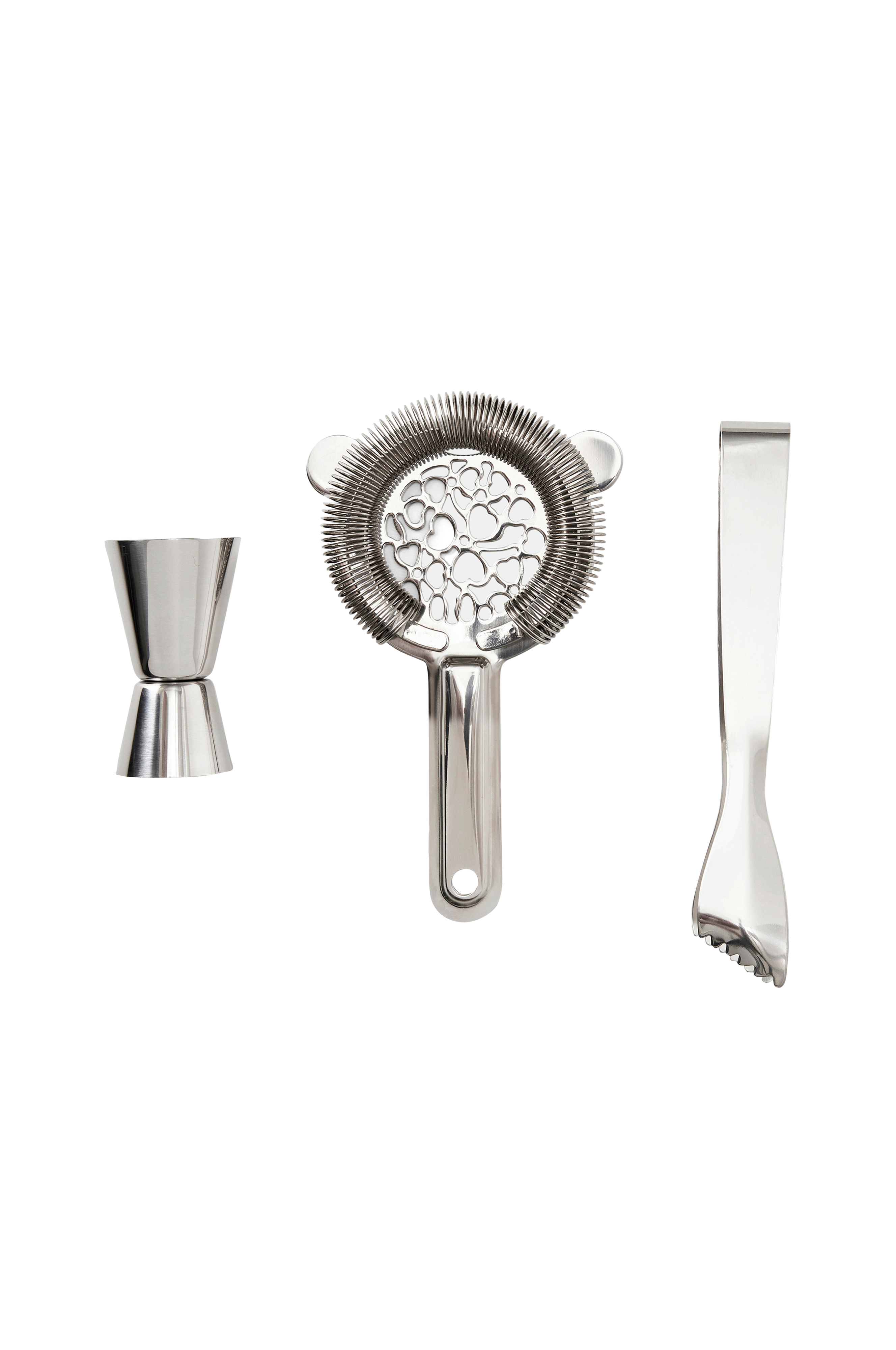 Vi introducerer det essentielle kit til at skabe de mest forfriskende cocktails - en raffineret værktøjskasse i en elegant boglignende æske, der er den perfekte gå-i-byen-gave. Indeni finder du en istang, en Hawthorne-si og en jigger, der hver især fungerer som vigtige værktøjer i mixologiens verden for at sikre skabelsen af en velskabt og afbalanceret drink. Alle produkter er lavet af rustfrit stål og tåler opvaskemaskine.