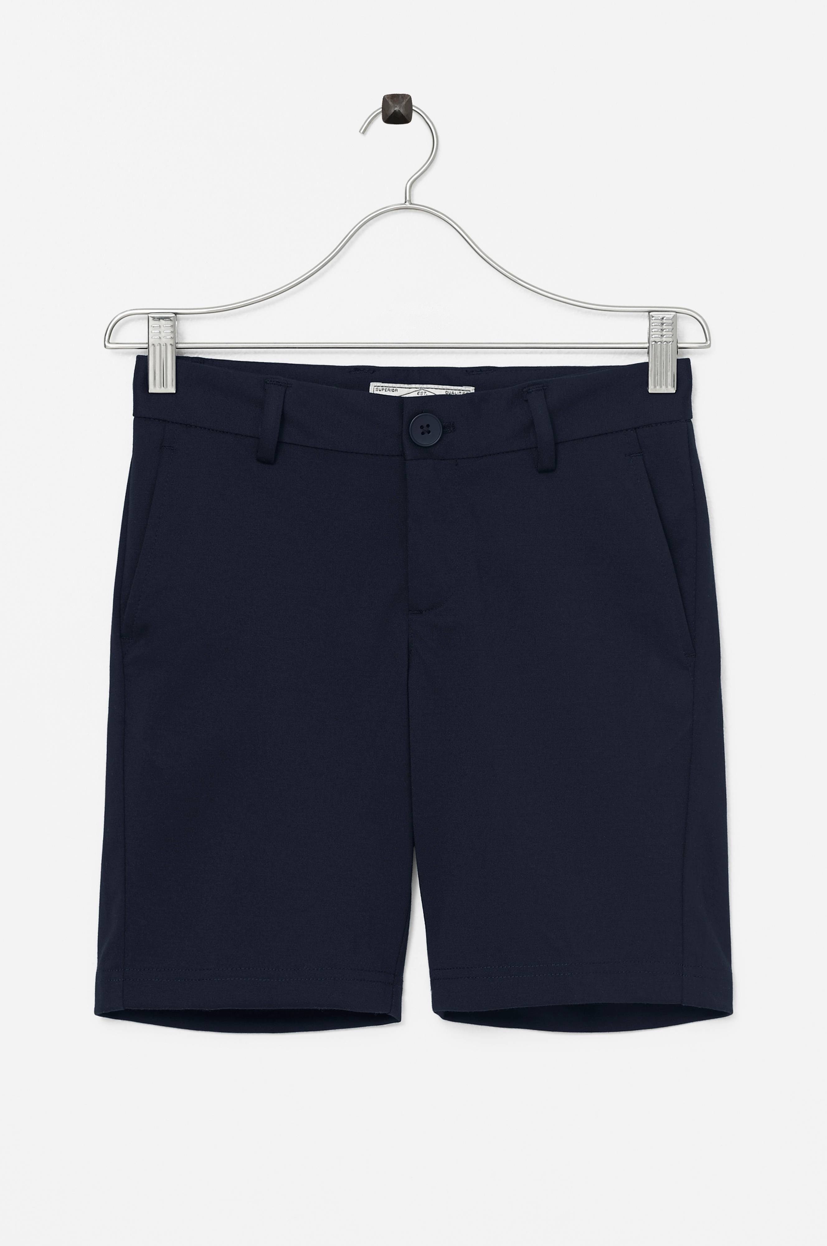 Shorts i vævet materiale med behagelig stretch. Linning med stropper og knap. En skjult knap på indersiden af linning. Gylp med lynlås. Lommer i siden og to indsatte baglommer med knap.