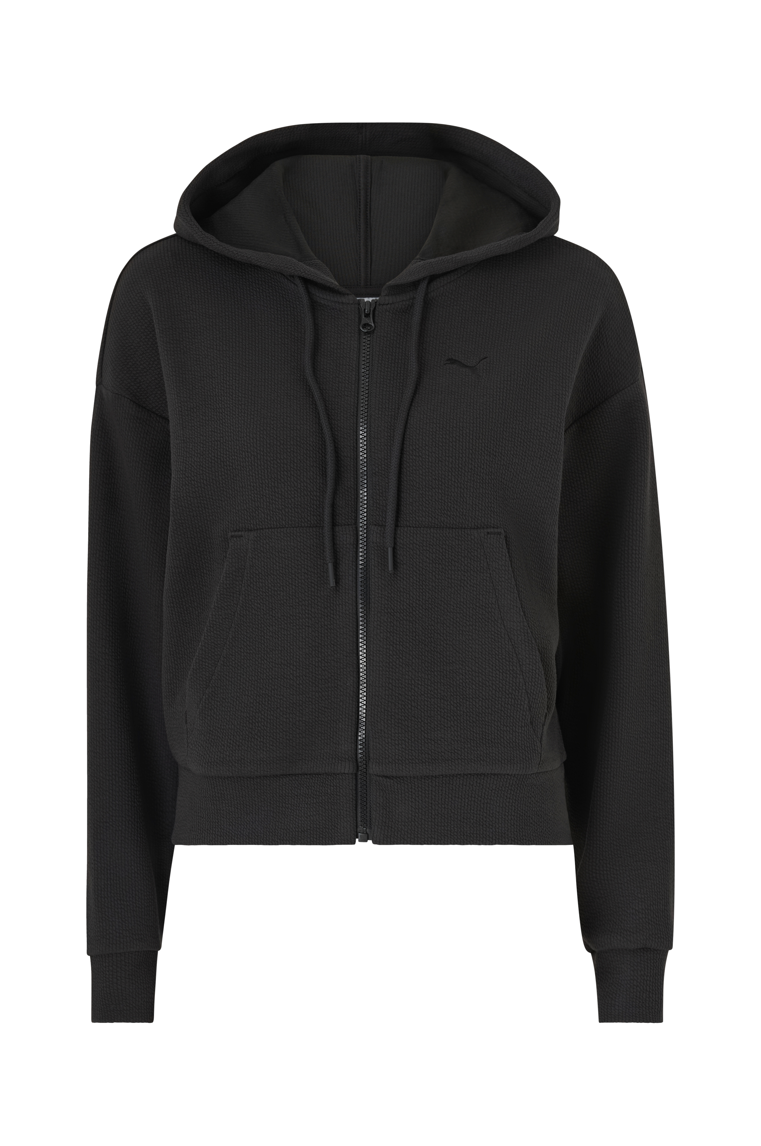 • Elastisk stof med struktur• Croppet længde• Hætte med træksnørre• Lynlås• To lommer foran• Manchetter ved manchetterne og nederst