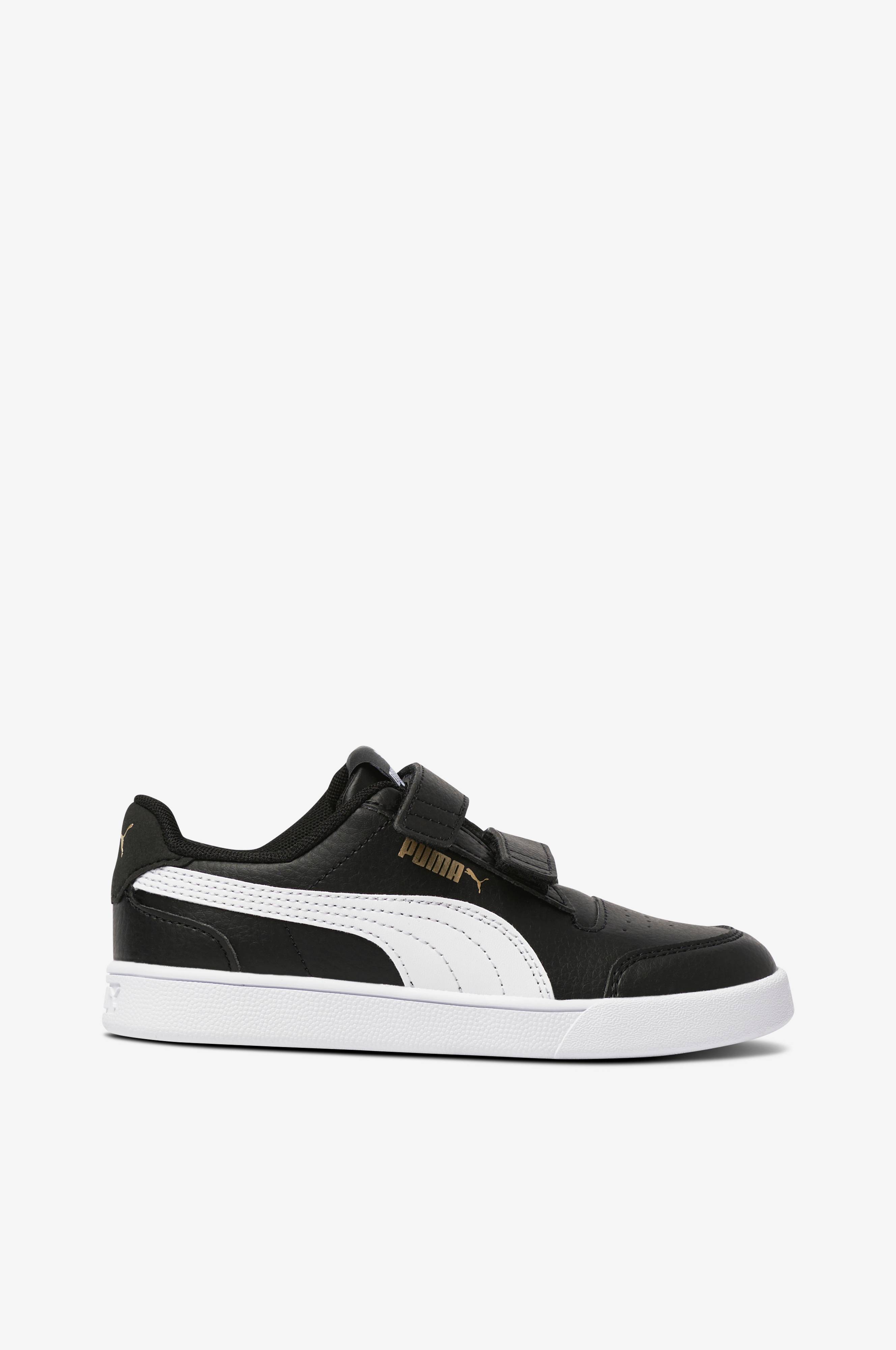Sneakers i imiteret skind med to velcroremme som regulerer pasformen. Perforeret hulmønster på forfoden. Dæmpende SoftFoam-indersål og ydersål af gummi.