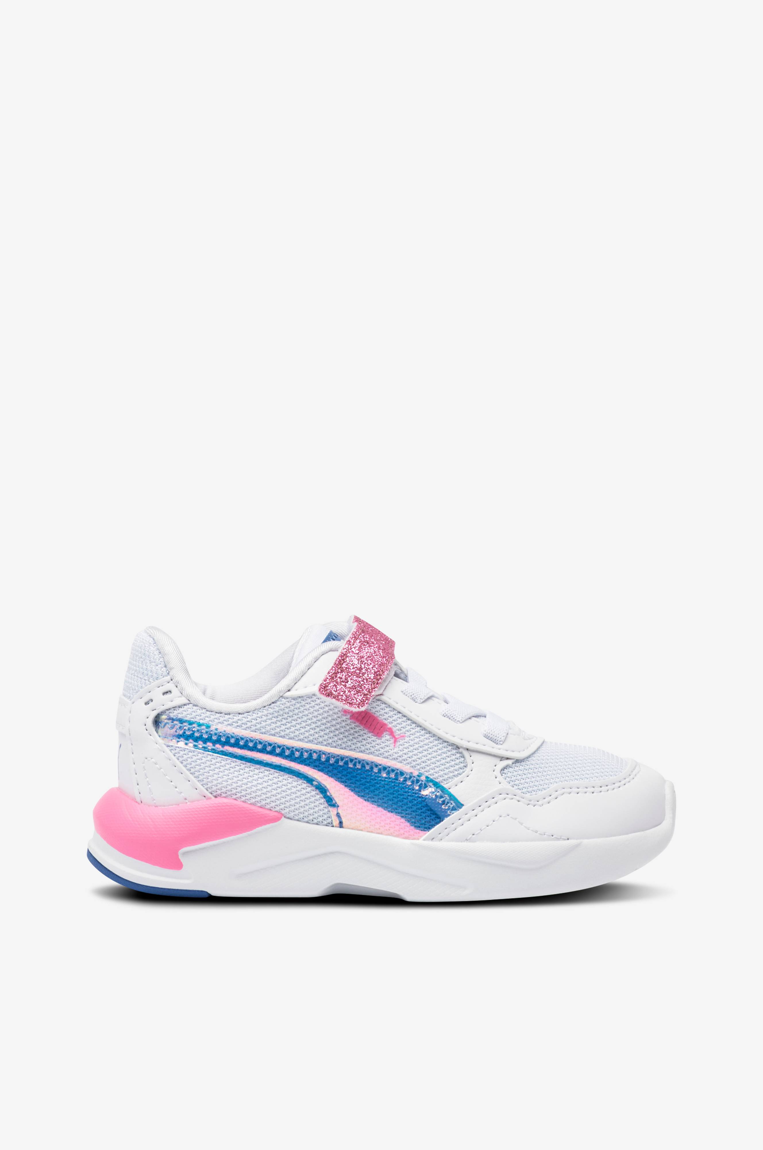 • Øvredel i mesh og kunststof• Justérbart, glitrende velcrobånd• Hurtigsnøring• Udtagelig indersål• Tekstilforing• EVA ydersål