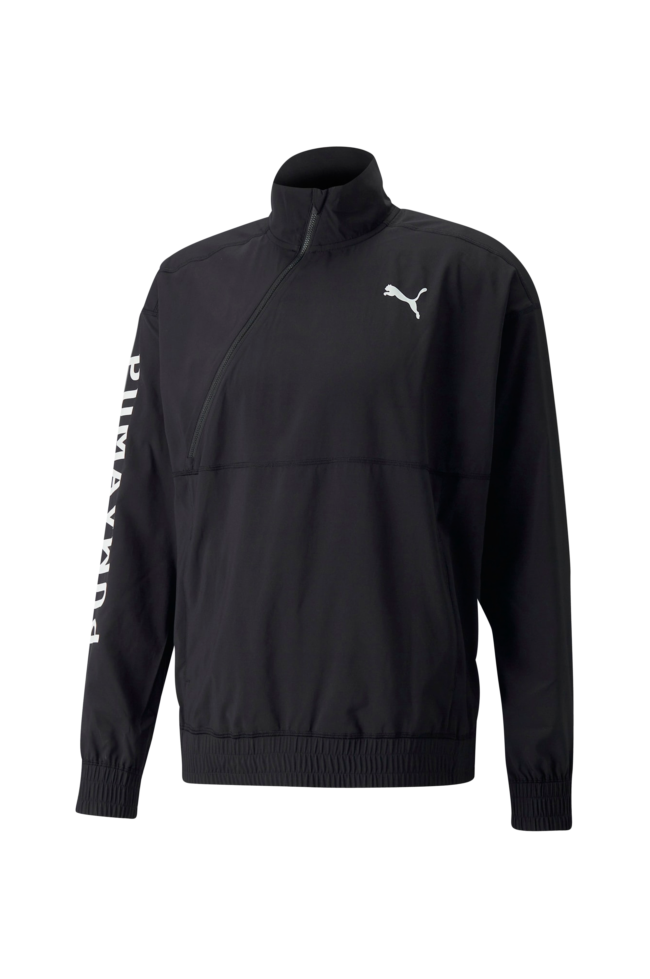 • Vævet stof med stræk• Fugttransporterende• Ståkrave• Diagonal, kort lynlås• Kængurulomme• Elastiske manchetter ved manchetterne og nederst• Tryk på ryggen, på det ene ærme og på brystet