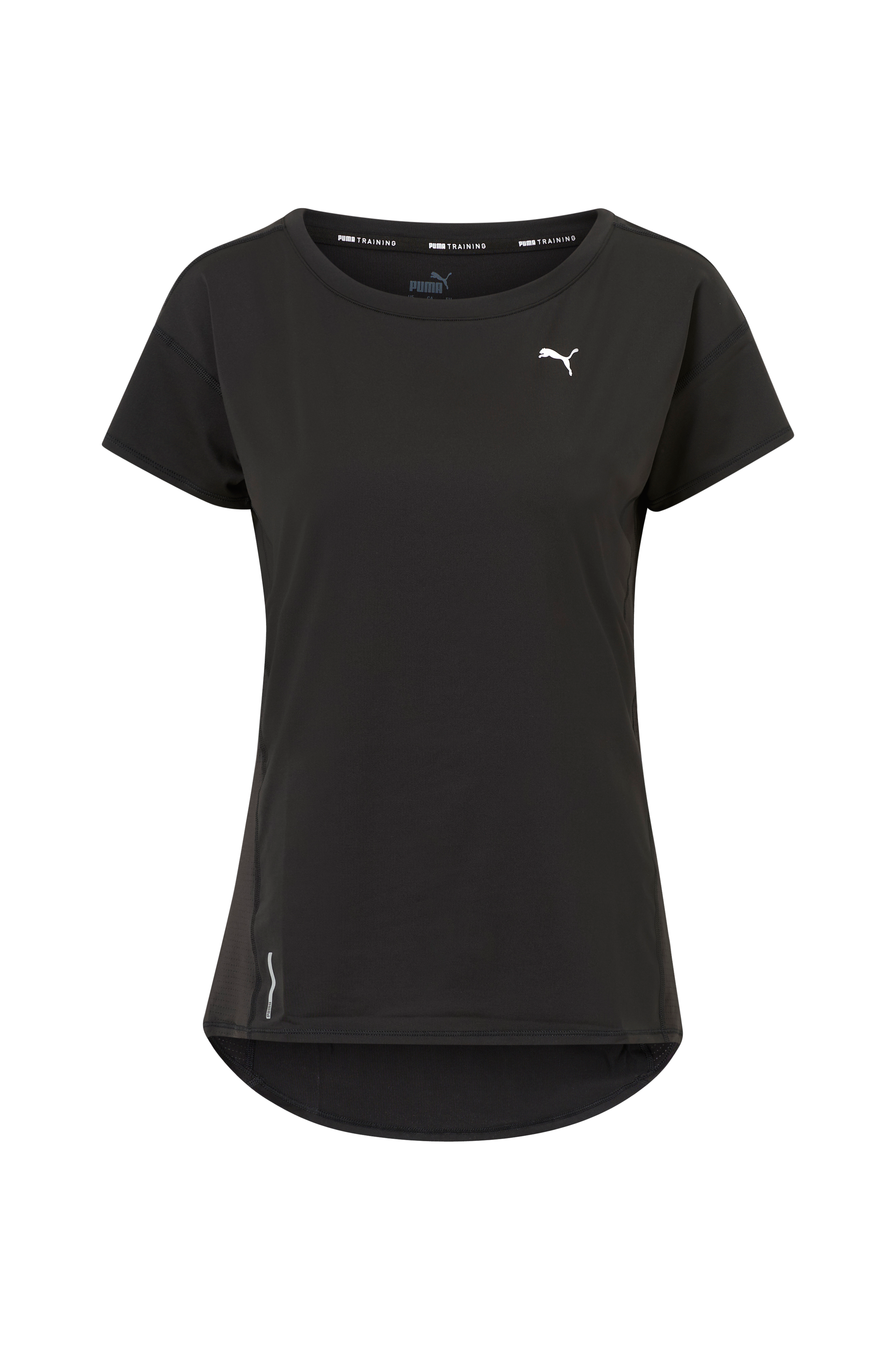 Træningstop i let figursyet model med meshindsatse i siderne. Afrundet kant forneden, som er længere bagpå og korte raglanærmer samt rund hals med lille kant. Hurtigtørrende funktionsmateriale dryCELL som transporterer fugt væk fra huden.