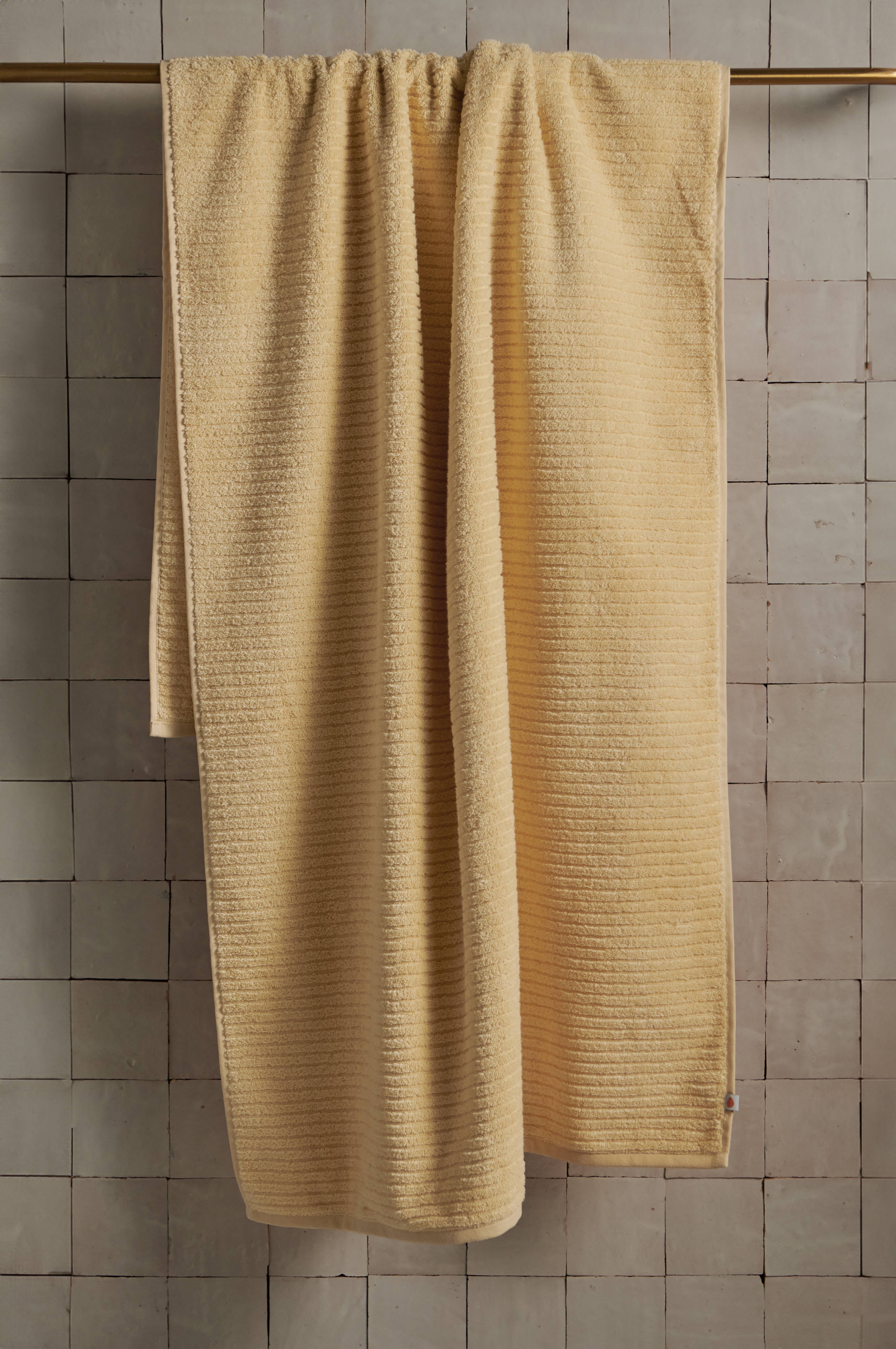 • Badehåndklæde i ultrablødt, ribbet bomuldsfrotté