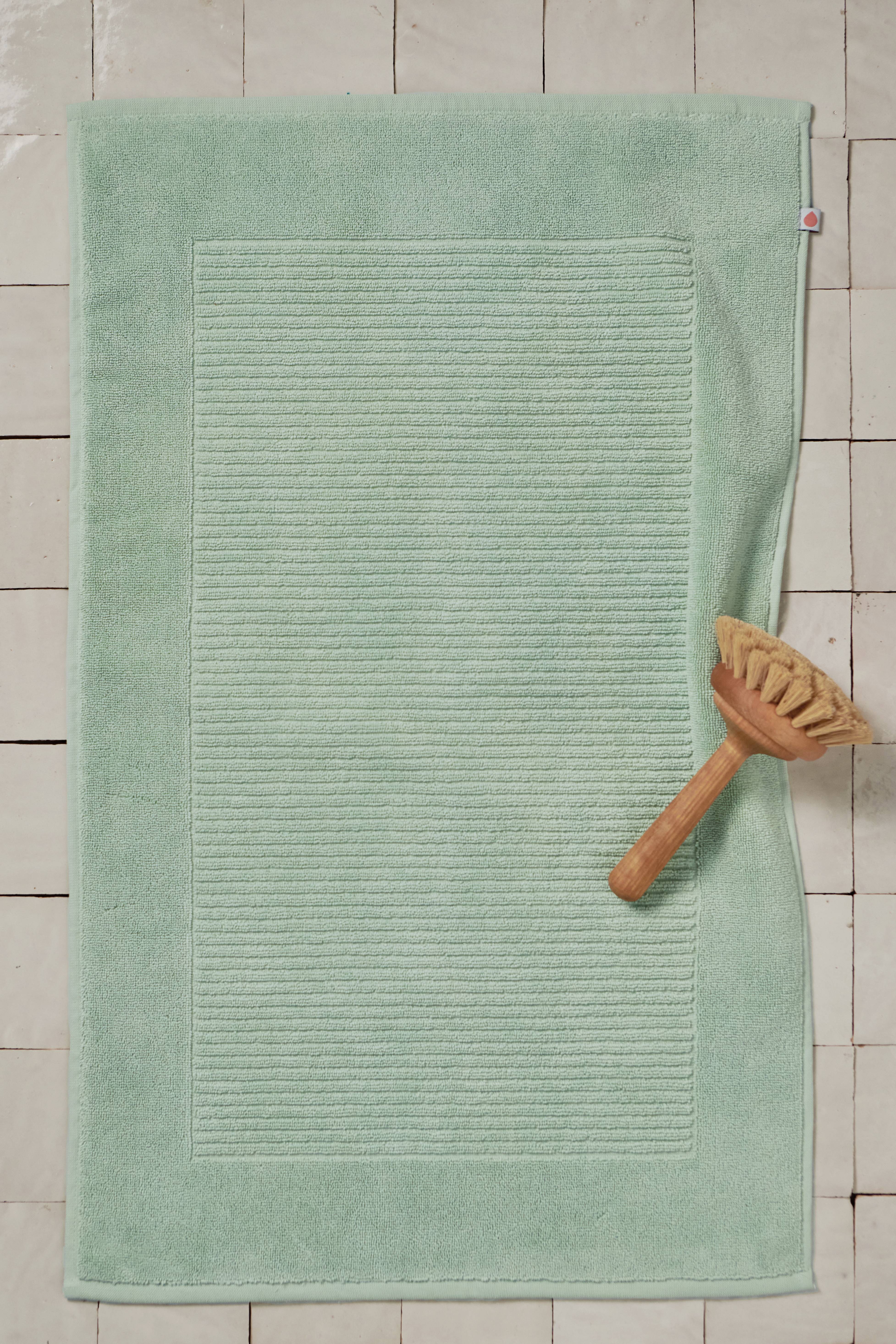 Bomuldsmåtte..perfekt til at tørre fødderne på efter f.eks. badet..suger vandet godt op.. nem at vaske.. prisværdig..