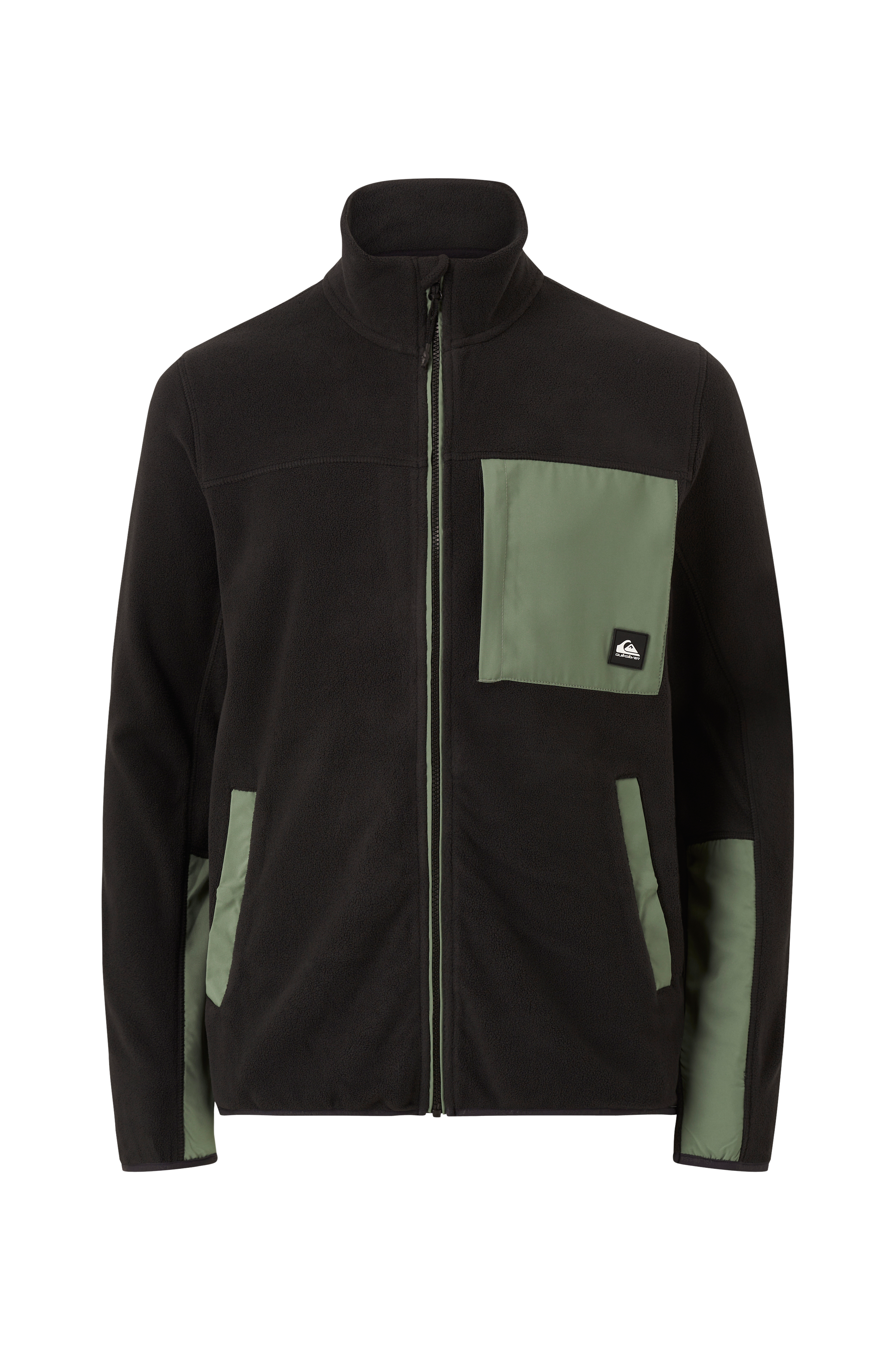 • Trøje i fleece• Opretstående krave• Lynlås• Sidelommer med trykknap• Vævet brystlomme• Indlagt, vævet stof på ærmerne• Elastiske båndkanter ved ærmeafslutningerne og nederst