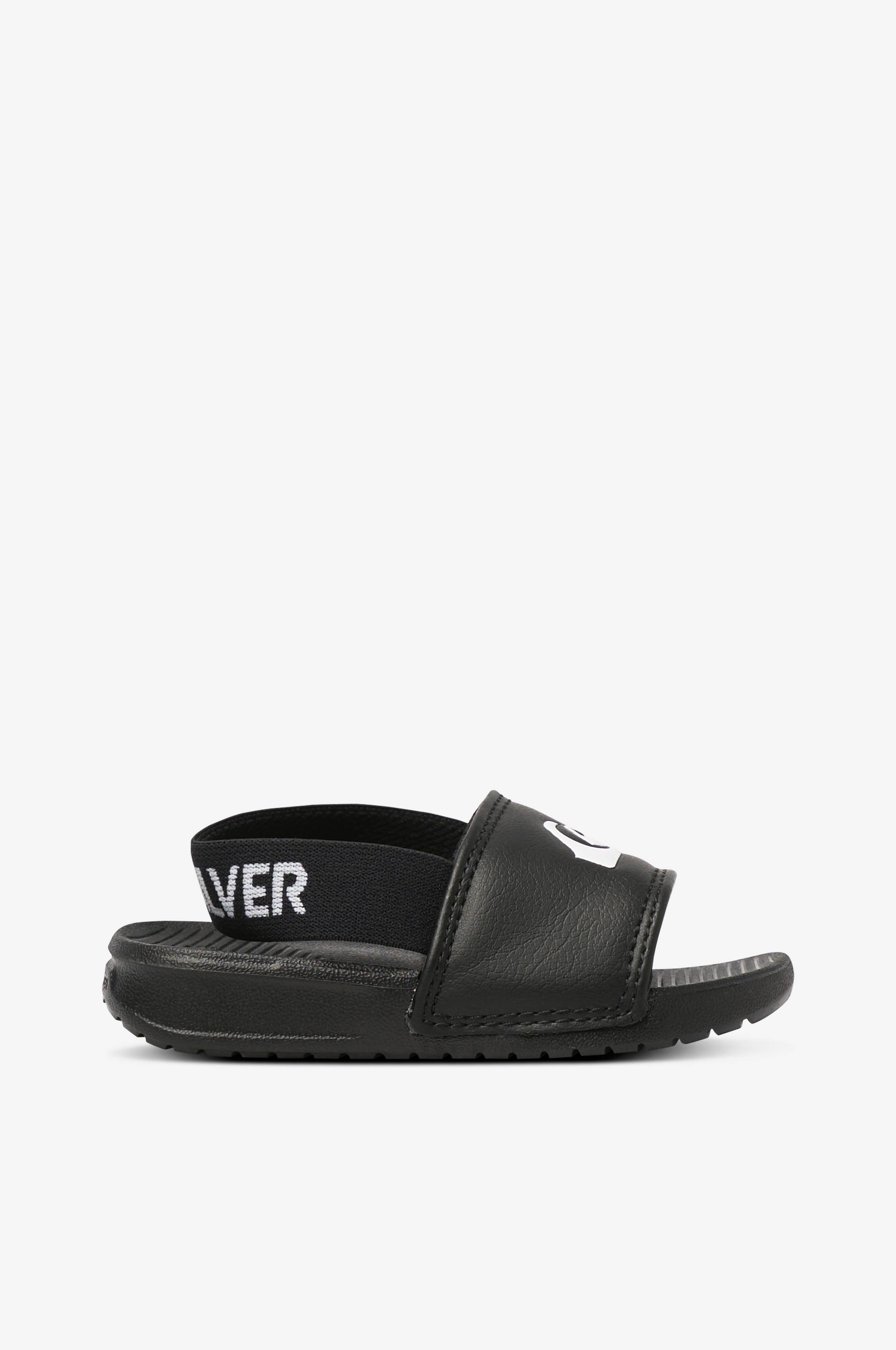 Bløde sandaler med tekstilforet og vatteret overdel i syntet. Elastisk bånd rundt om hælen. Formet fodseng. Ydersål i EVA.