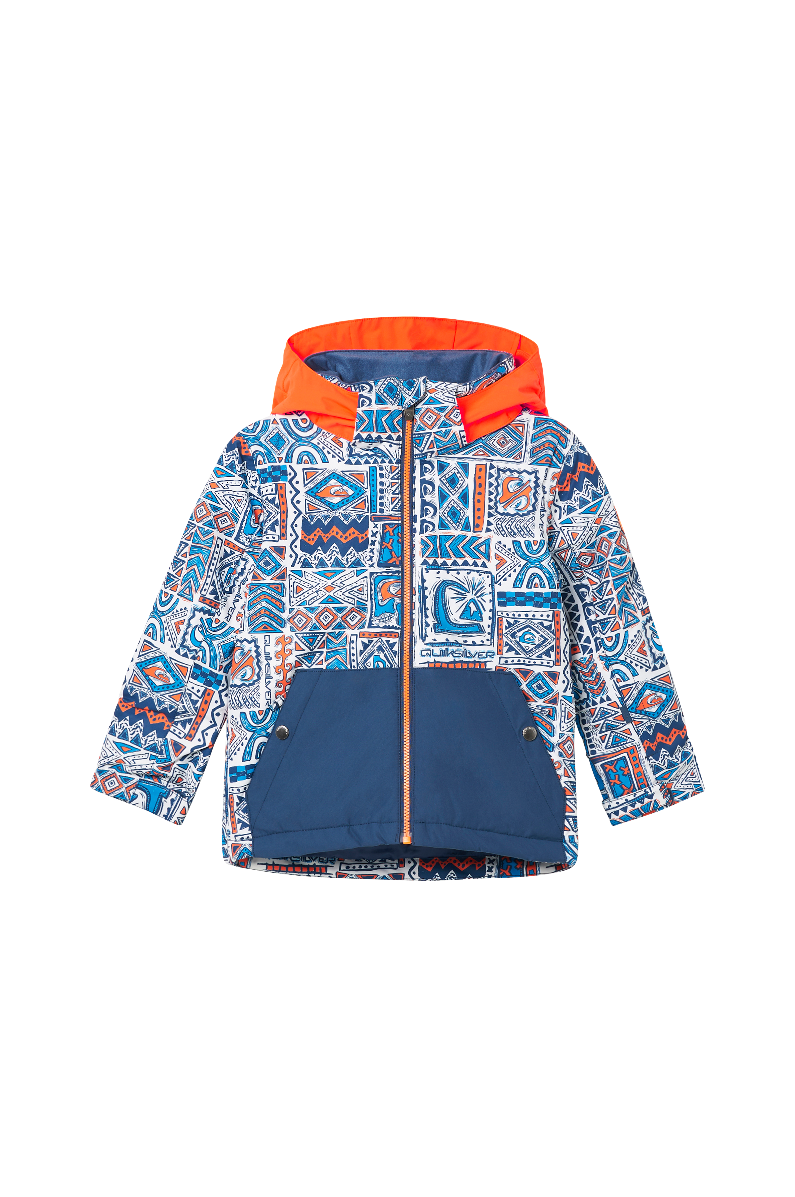 En mønstret jakke som er både varm og vandtæt med WarmFlight-vattering og DryFlight-teknologi, vandsøjletryk 10.000 mm. Tapede sømme på udsatte steder.