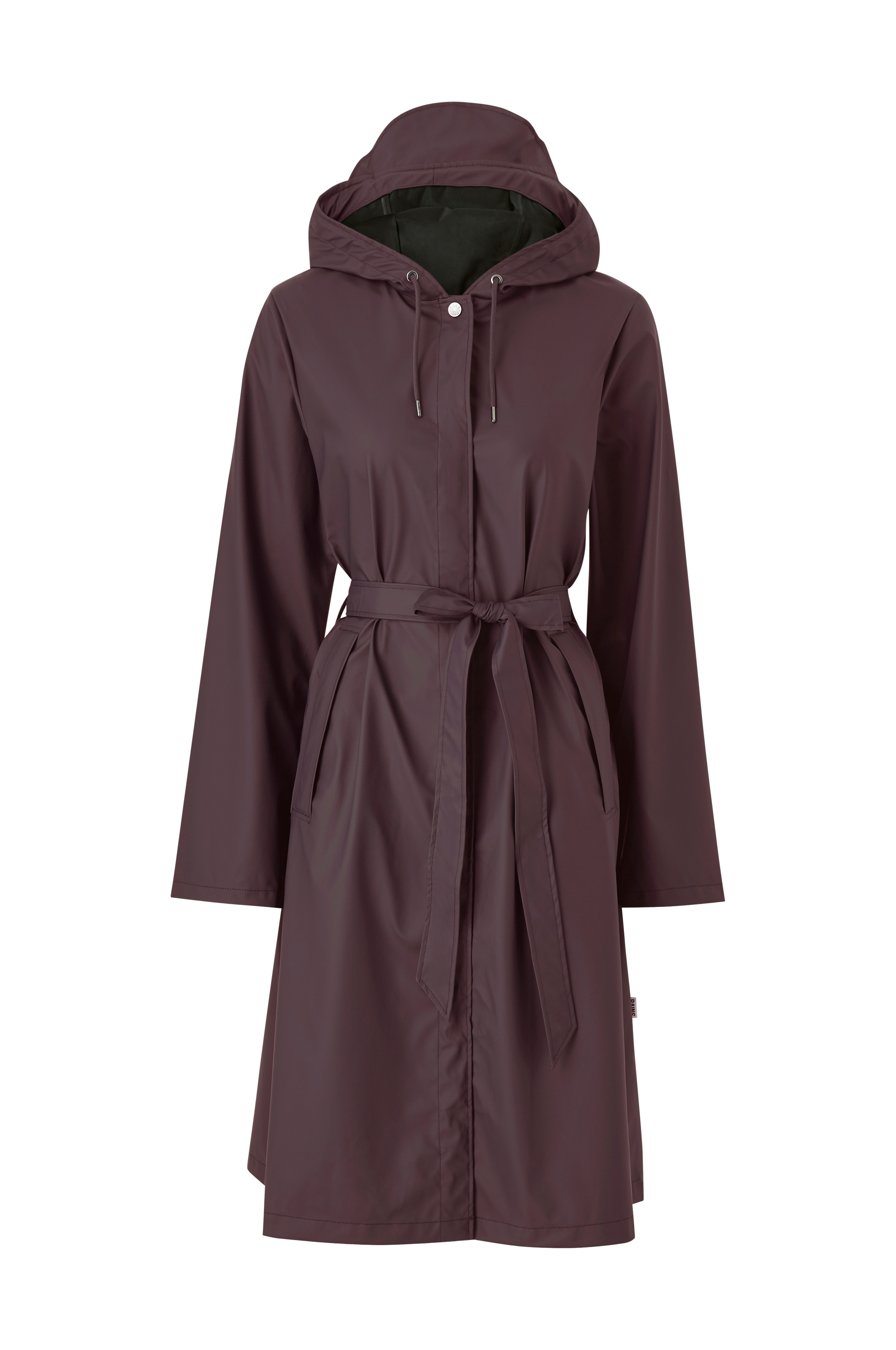 Jeg er meget tilfreds med frakken, men ville ønske, at den havde lynlås i stedet for knapper. Det er tyndt PU-gummi, som beskytter godt mod regn.