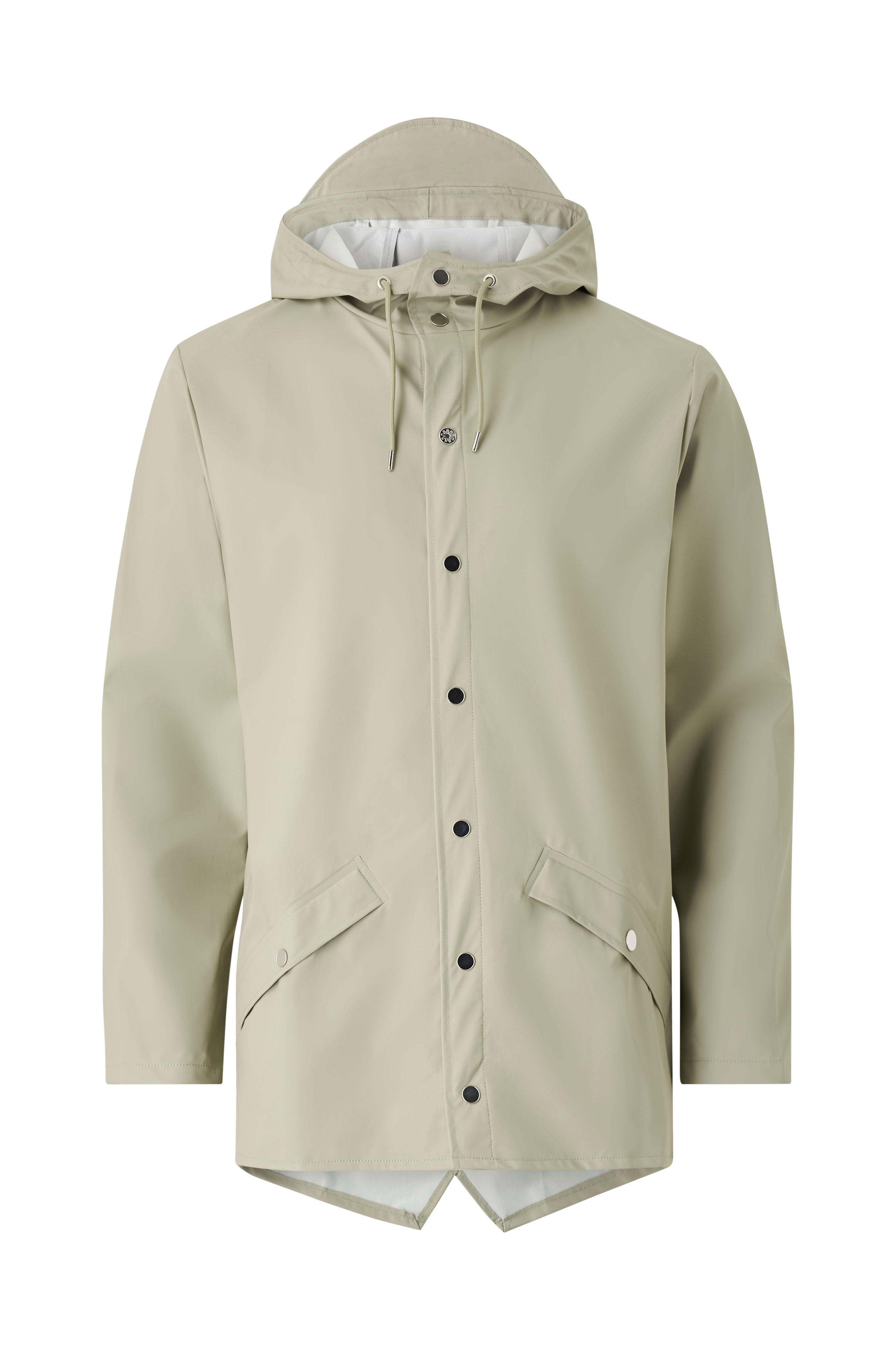 Regnjakke fra Rains med normal pasform og som også er unisex. Jakken føles let og har en vandtæt samt mat overflade. To sidelommer med knap og hætte med justerbar løbegang.