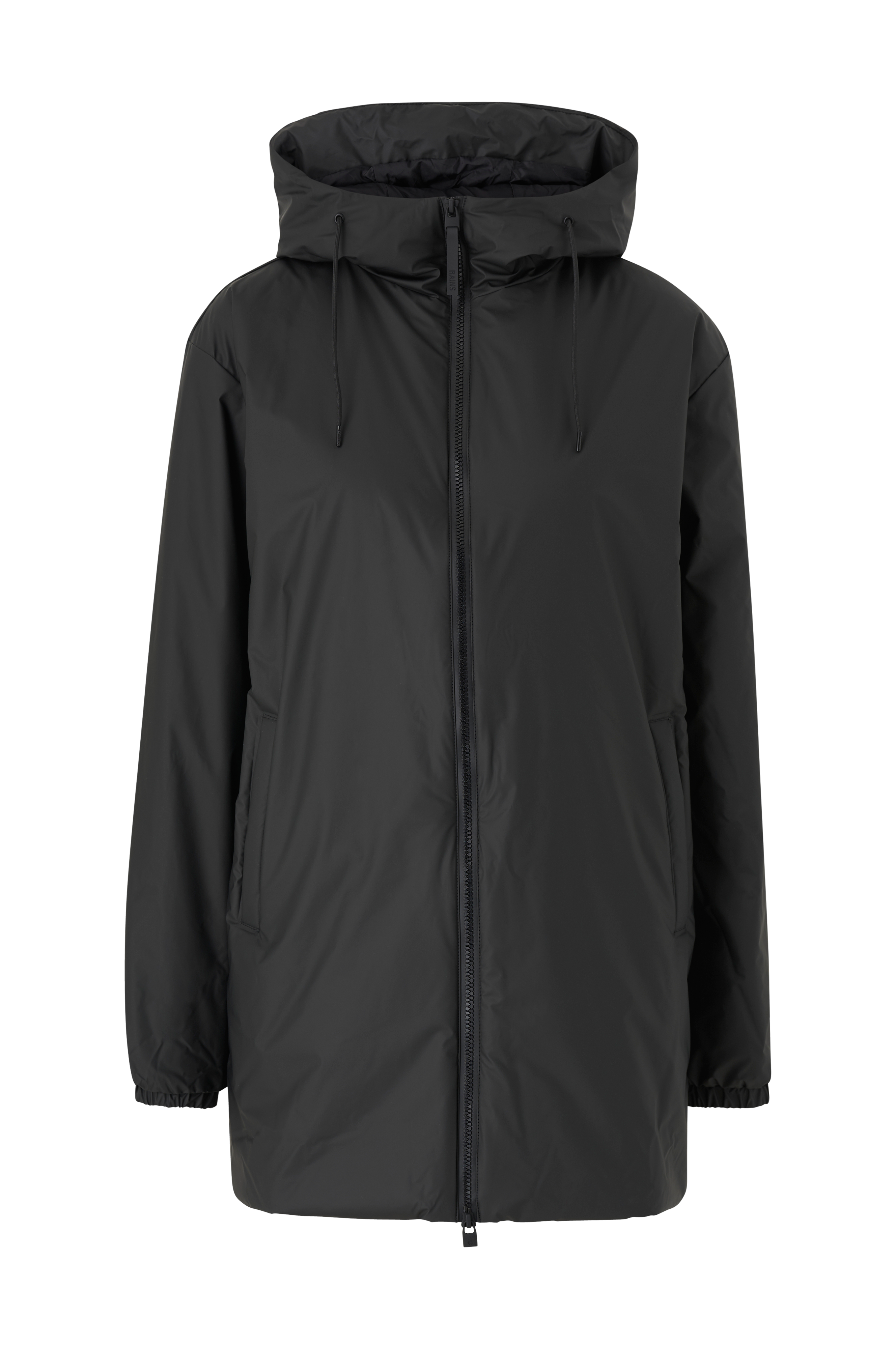 • Let foret regnjakke med PU-belægning • Fast hætte med træksnørre • To-vejs lynlås • Sidelommer med trikotfor • En inderlomme med lynlås • Elastik ved manchetterne • Vandtæt • Vindtæt • Åndbar • Vandsøjle: 4000 mm • Åndbarhed: 2000 g/m2/24h • Længde: 82 cm i størrelse S