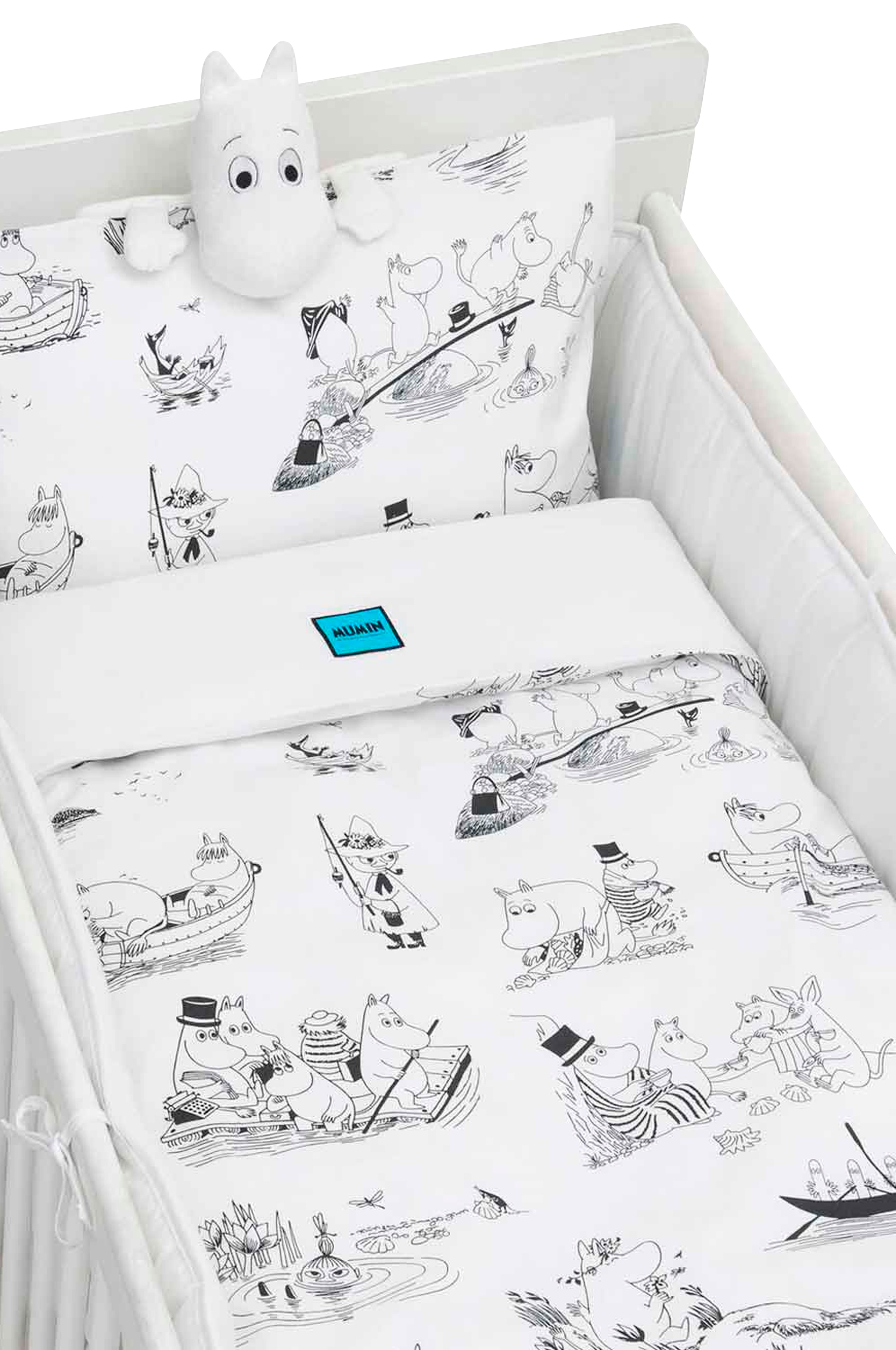 Sengesæt til de mindste børn af økologisk GOTS-certifieret bomuld. Passer till tremmeseng. Materialet er blødt, svalt og skønt for at sikre barnet maksimal sovekomfort hele natten. Flot mønster med Mumifigurer.