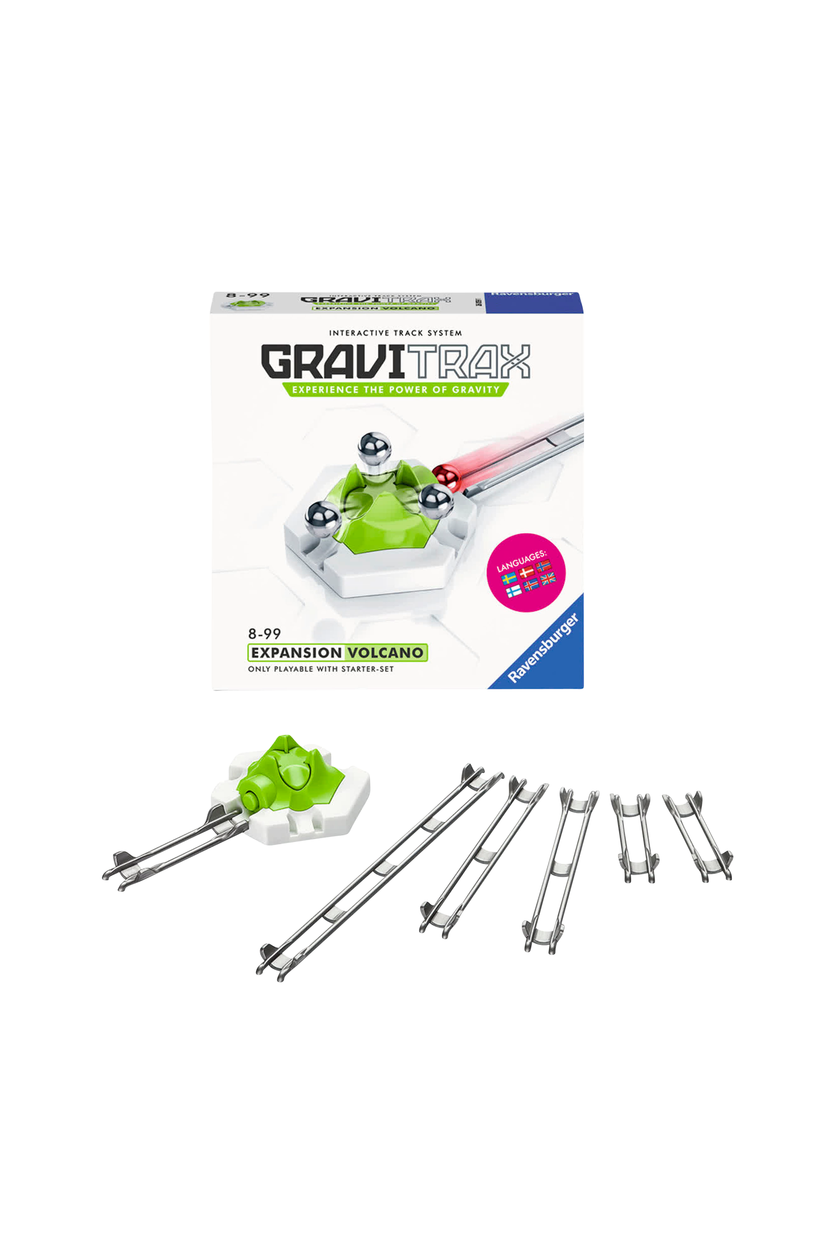 Skab en eksplosion! Vulkanen frigør ny energi på dine baner! Kombiner Volcano med GraviTrax Starter-Set og få endnu mere action på dine baner! Hvor langt og hvor højt flyver din kugler efter et vulkanudbrud?