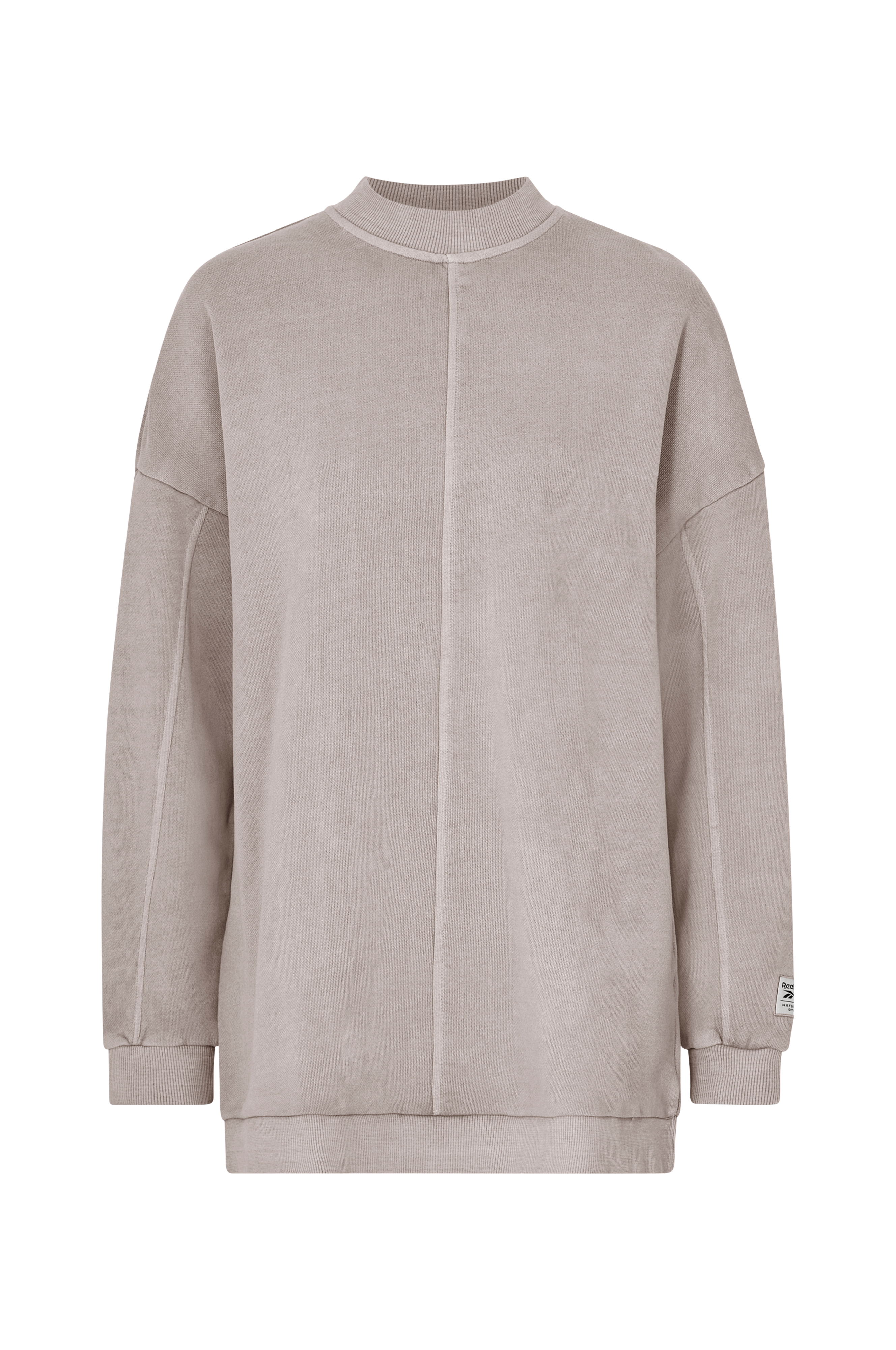 • Oversize pasform • Vertikale syninger foran og bagpå • Rund, ribbet halsudskæring • Ribmanchetter ved manchetterne og nederst • Nedsænkede skuldre • Længde: 78 cm i størrelse S