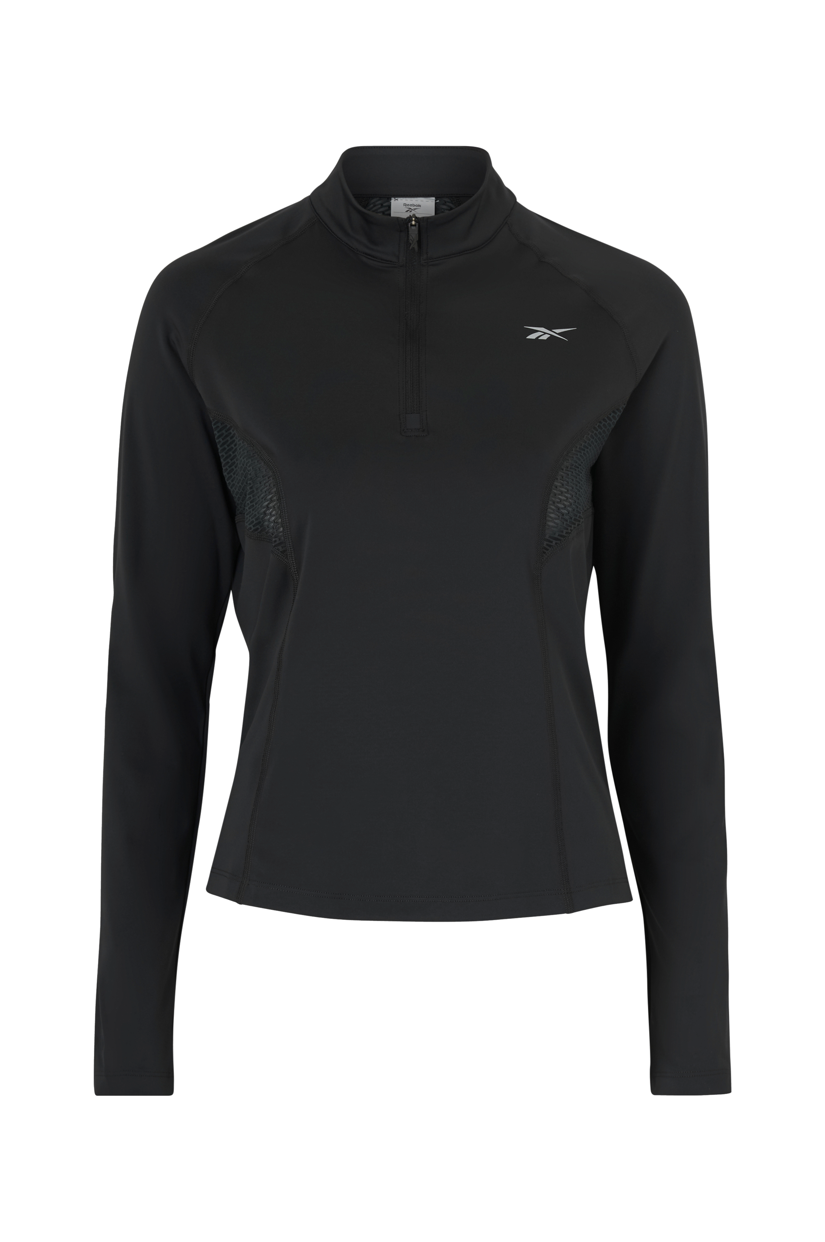 • Figursyet pasform• Ventilerende meshpaneler på ryggen og under ærmerne• Lille opretstående krave• Kort lynlås• Langt ærme• Elastisk, fugttransporterende materiale