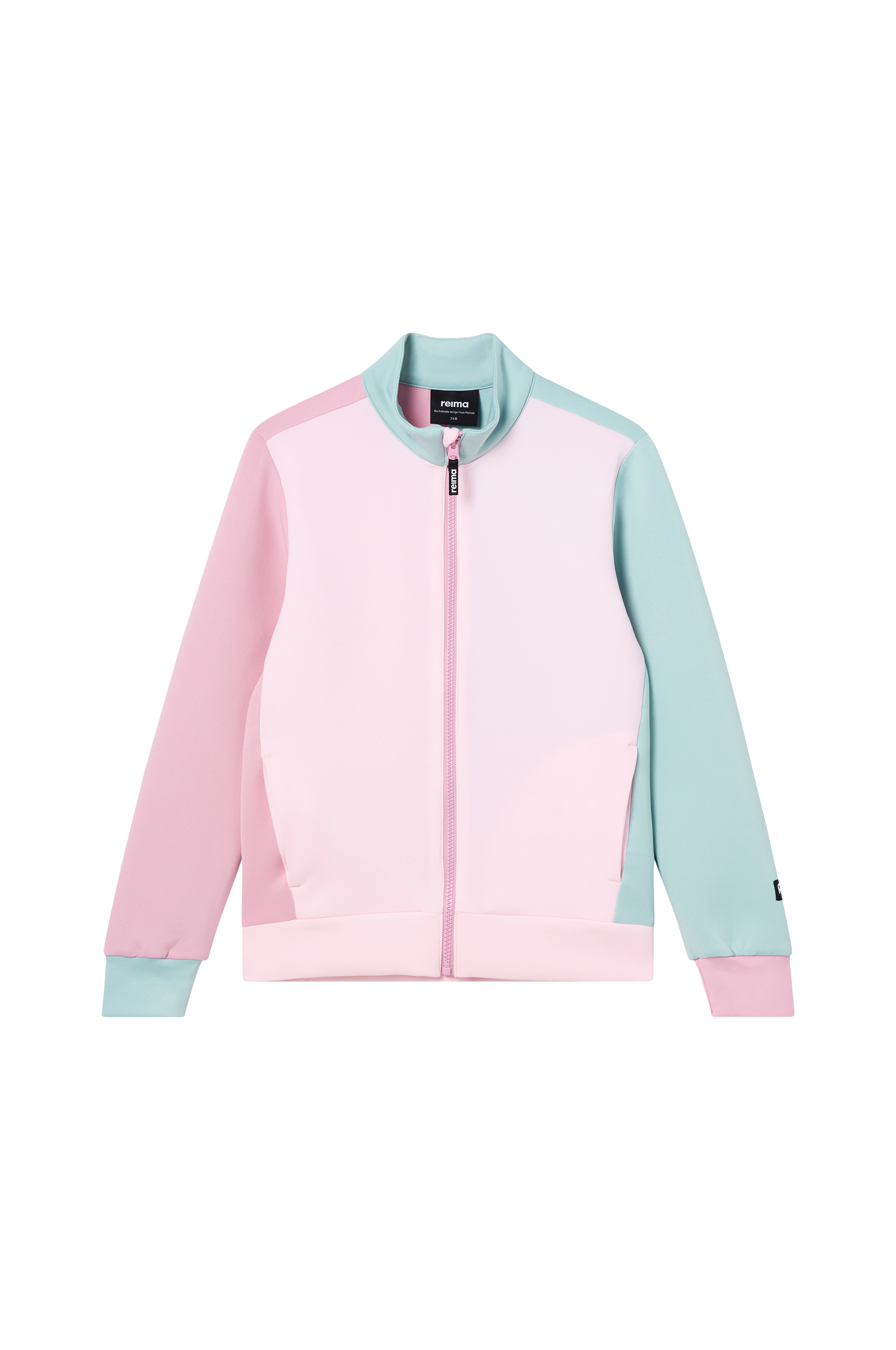 • Elastisk, bekvemt materiale med fugttransporterende specifikationer• Opretstående krave• Lynlås• Manchetter ved manchetterne og nederst• Sidelommer