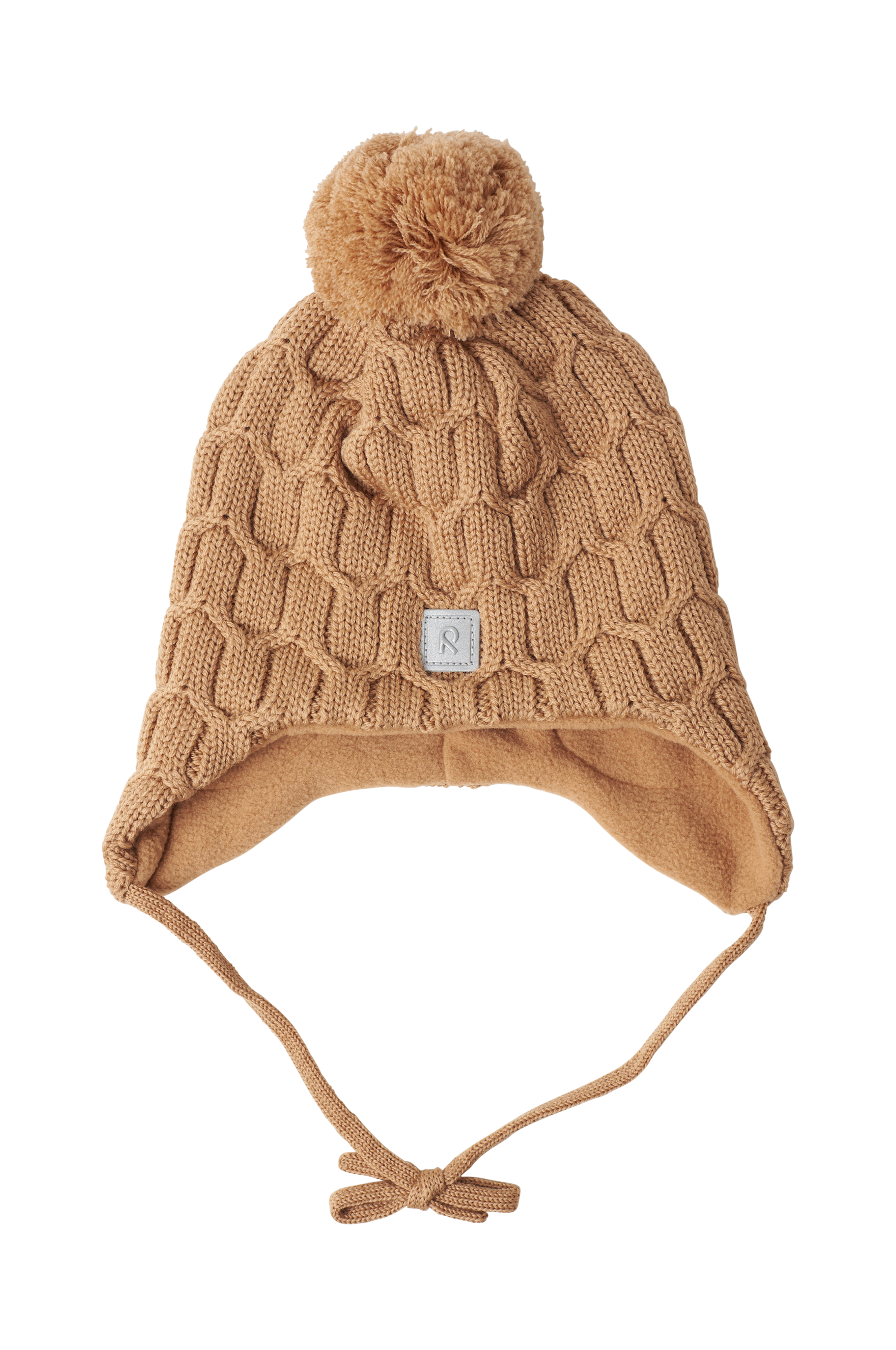 • Strikket hue i blød, varm merinould• Vindtætte øreflapper• Bindebånd under hagen• Varmt for i fleece• Pompon• Reflekterende detalje foran