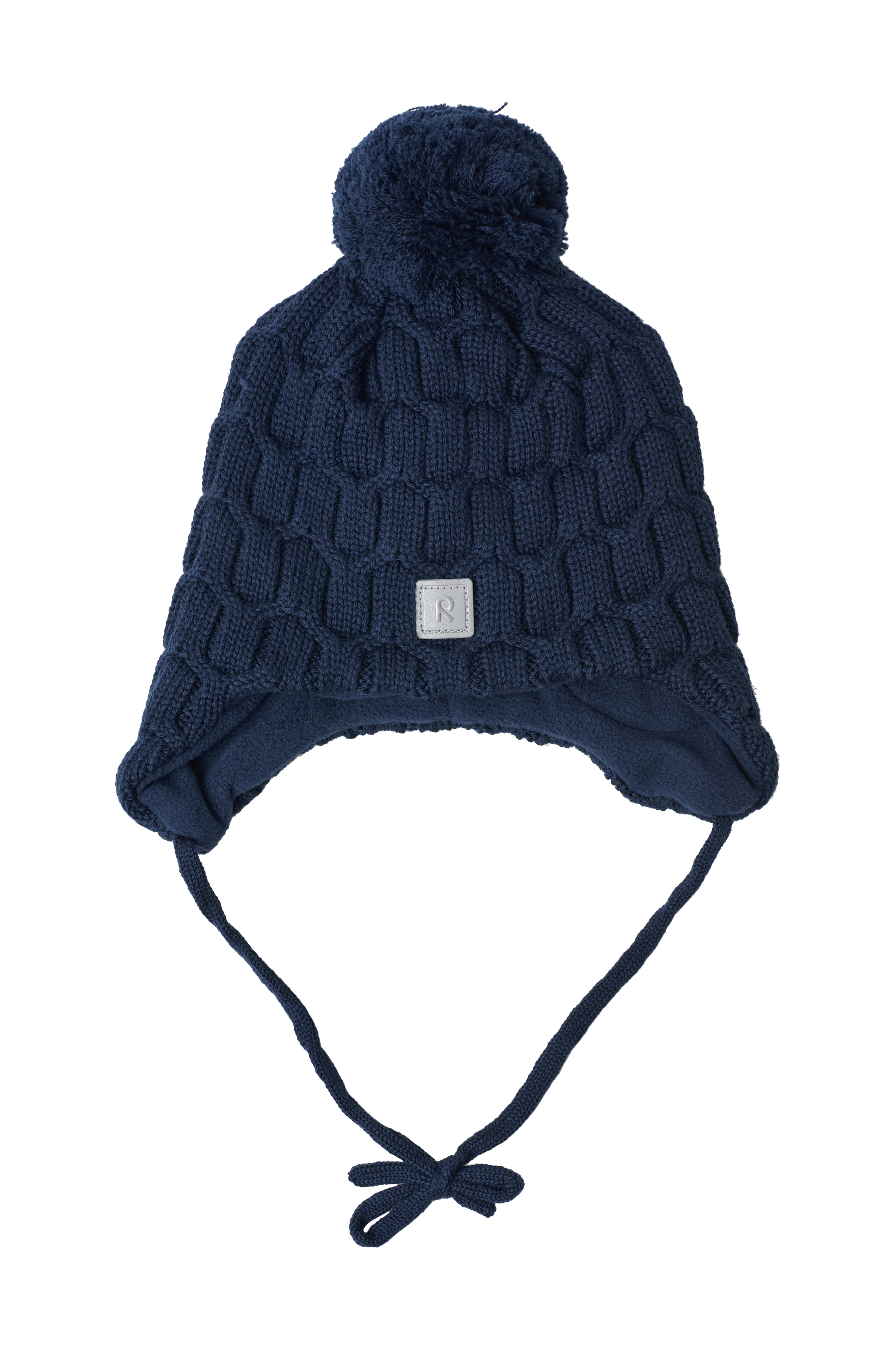 • Strikket hue i blød, varm merinould• Vindtætte øreflapper• Bindebånd under hagen• Varmt for i fleece• Pompon• Reflekterende detalje foran