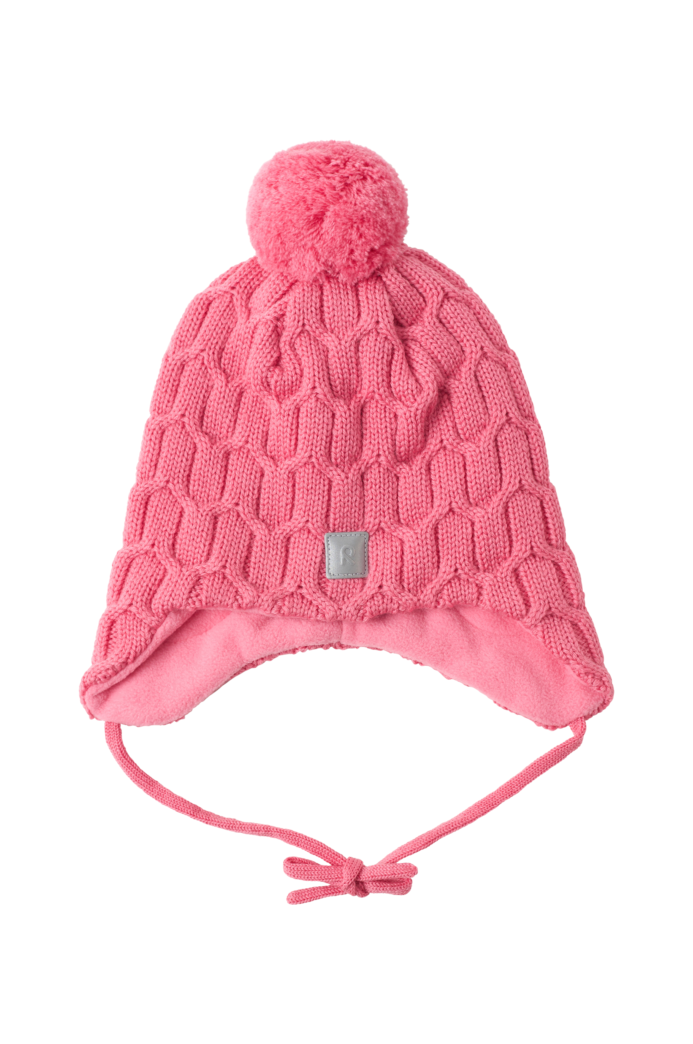 • Strikket hue i blød, varm merinould• Vindtætte øreflapper• Bindebånd under hagen• Varmt for i fleece• Pompon• Reflekterende detalje foran