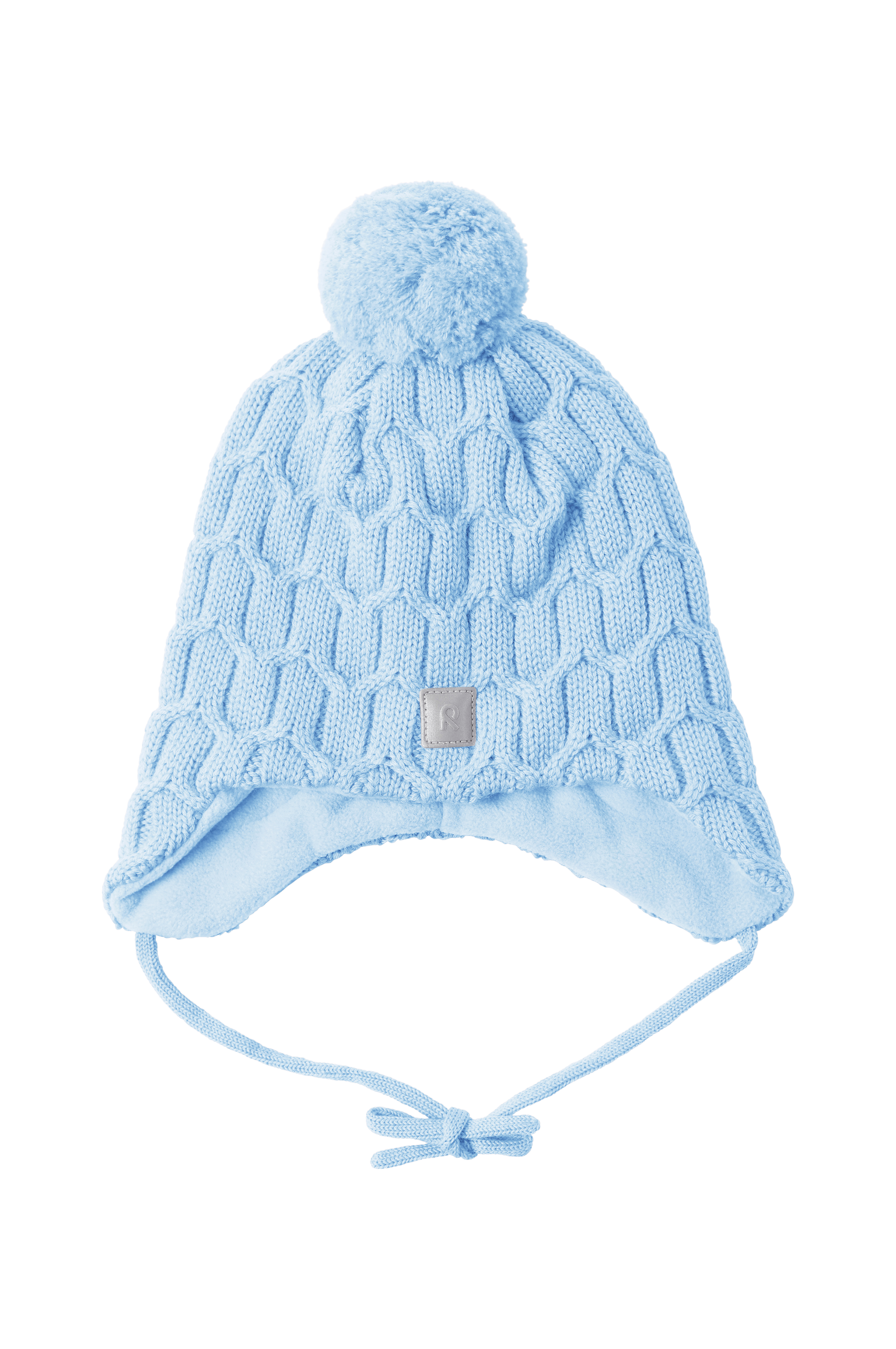 • Strikket hue i blød, varm merinould• Vindtætte øreflapper• Bindebånd under hagen• Varmt for i fleece• Pompon• Reflekterende detalje foran