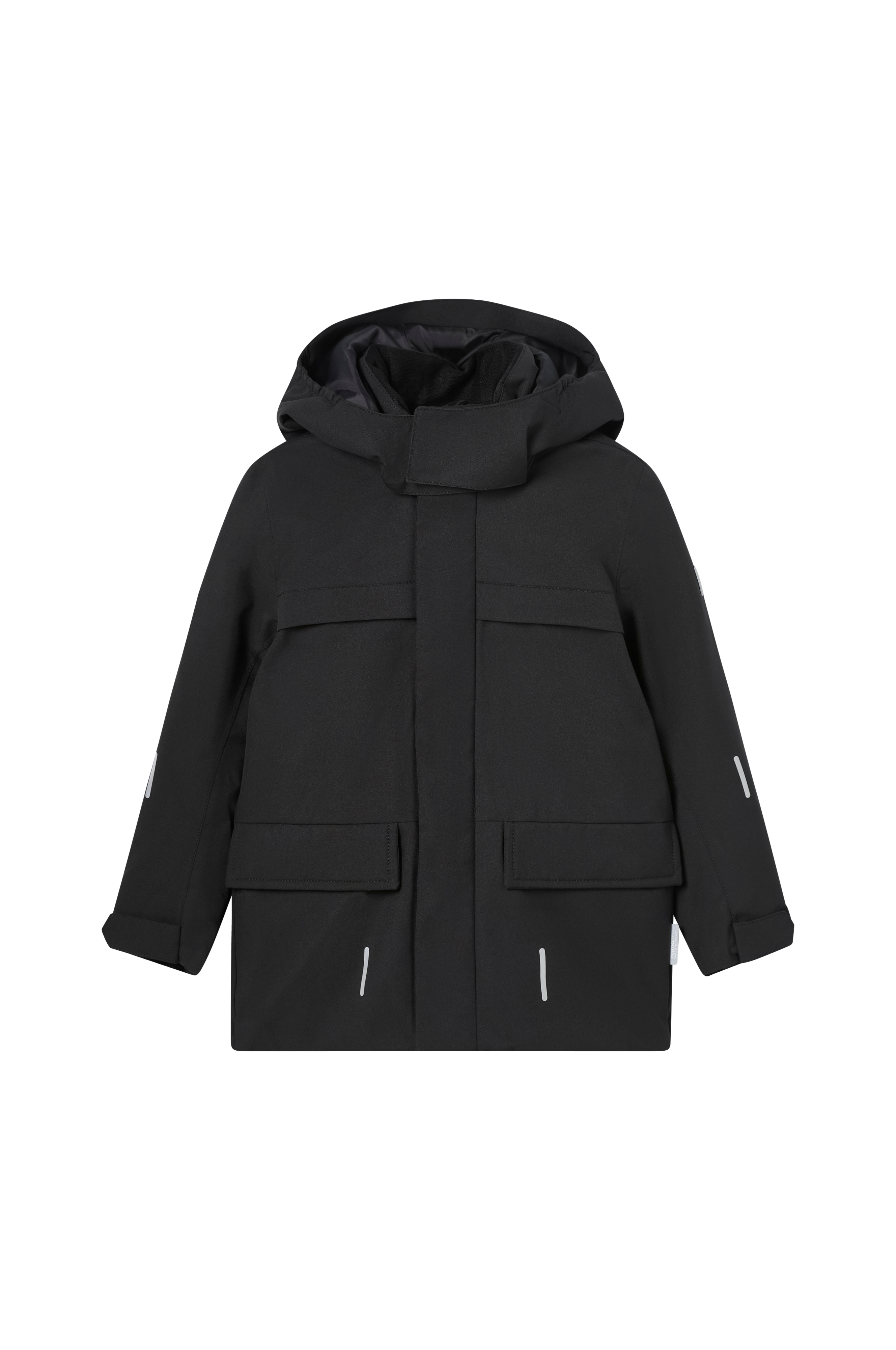 • Foret jakke • Vind- og vandafvisende materiale • Aftagelig, justérbar hætte • Høj krave med hagebeskytter • Justérbare ærmeafslutninger • Lynlås foran • Beskyttende vindflap over lynlåsen med velcrolukning • To store forlommer med låg • Refleksdetaljer • Træksnørre ved taljen • Længde: 55 cm i størrelse 110