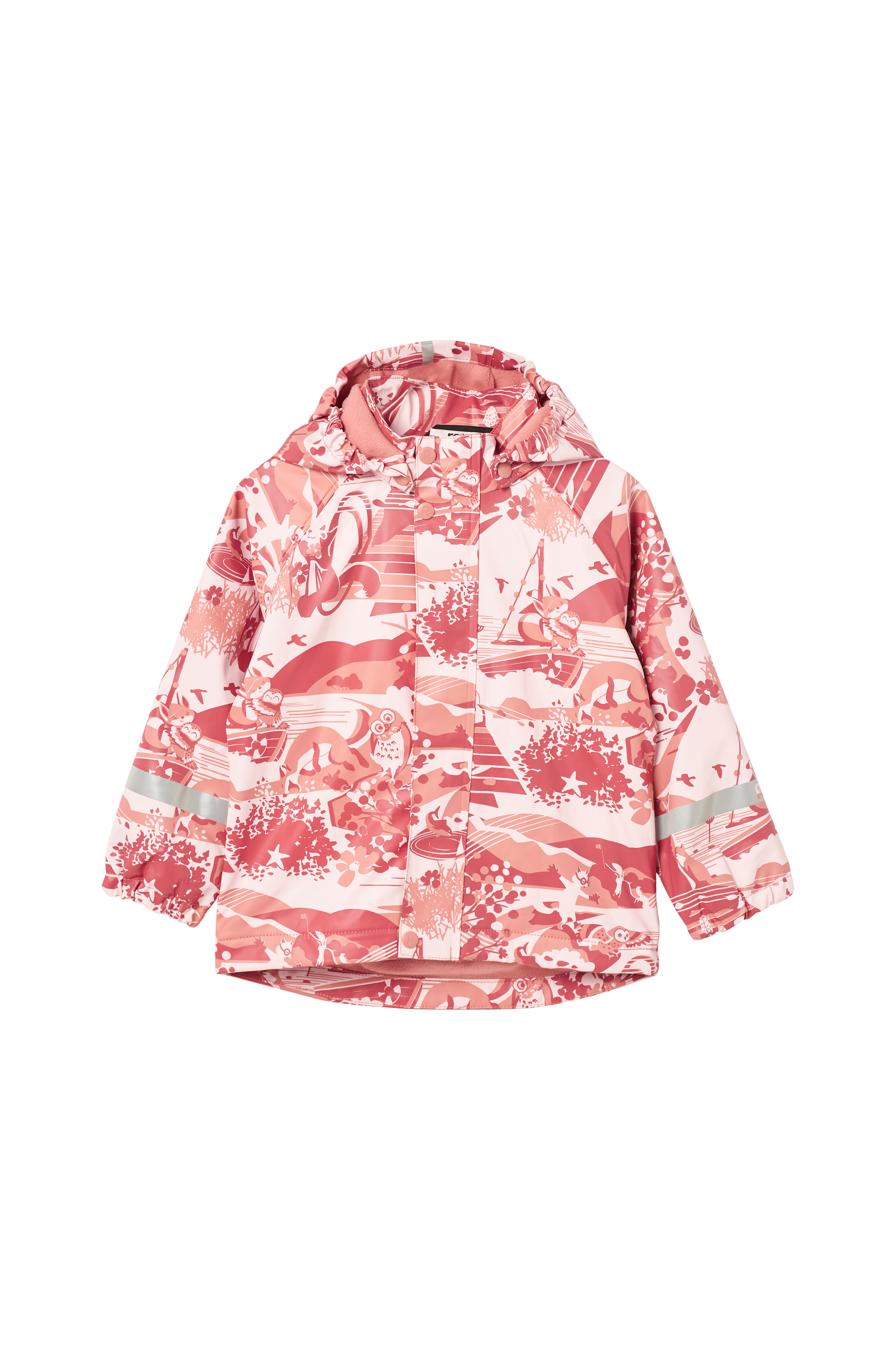 - Regnjakke med blødt fleecefor- Vandtætte, svejsede sømme- Fleksibelt materiale- Sikker, aftagelig hætte- Lynlås foran- Elastik i ærmekant- Detaljer i refleksmateriale- Uden PVC