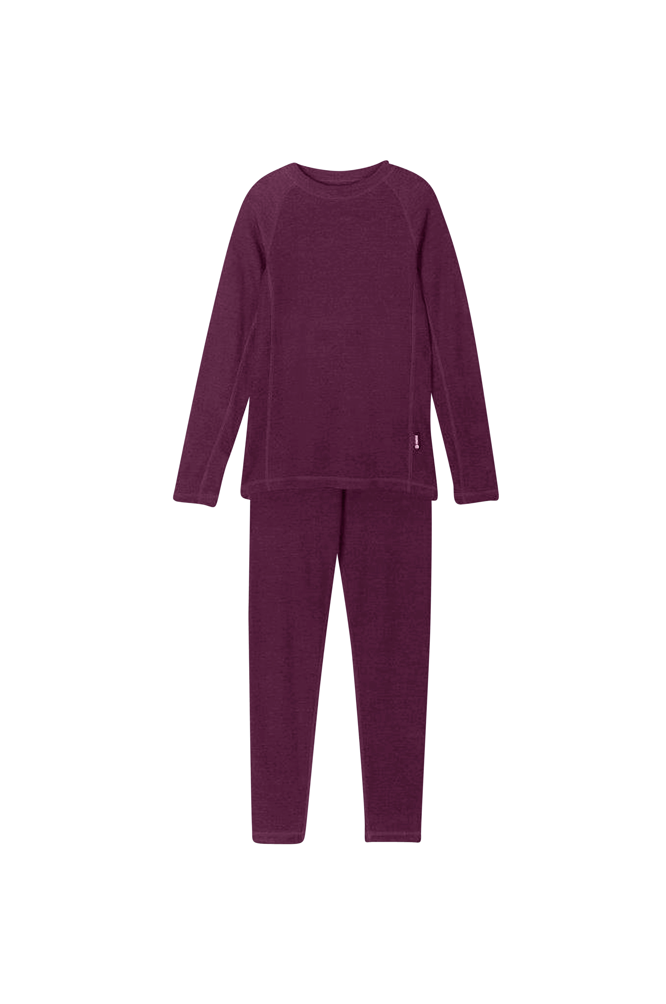Skiundertøj Taitoa fra Reima er et skønt basislag i dobbeltsidet strik med blød viskose af bambus på indersiden, som leder fugt væk og varm merinould på ydersiden, som giver optimal varme. Bambusviskose som leder fugt væk gør det behagligt at bruge. Uld holder barnet varmt, også når det sveder. En ideel kombination til beskyttelse mod kulde og våde forhold - både indendørs og udendørs. Bløde, flade sømme som ikke gnaver. Langærmet trøje med rund halsudskæring med rib og raglanærme. Bukser med elastik i taljen.