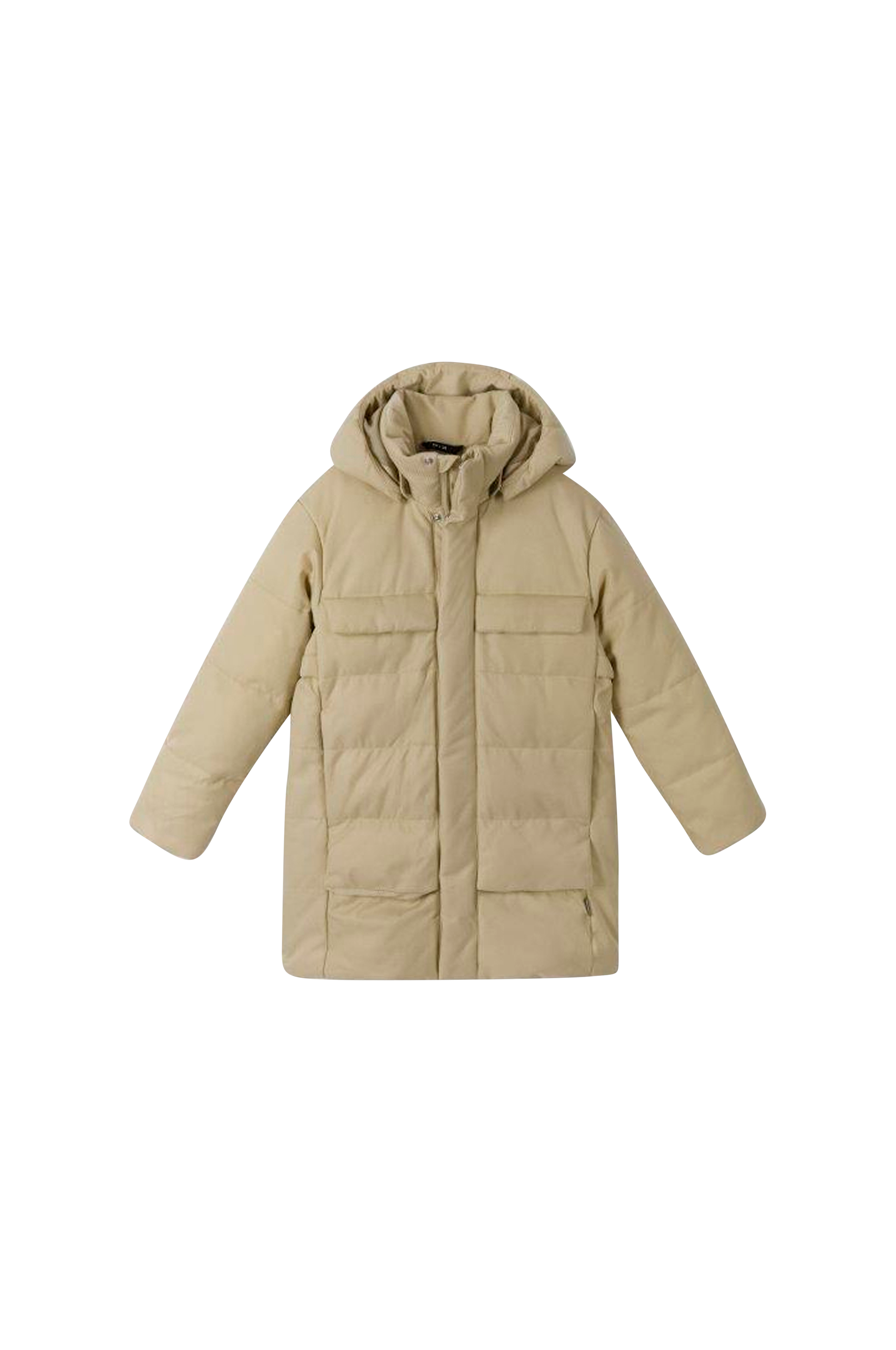 En varm, lang jakke med uldlignende finish. Stoffet er i et vand- og vindtæt materiale som er åndbart. Vandsøjletryk mindst 10000 mm og åndbarhed mindst 7000 g/m2/24h. Bluesign®-godkendt 100% genindvundet polyester Fellex®-isolering. Glat polyesterfor.