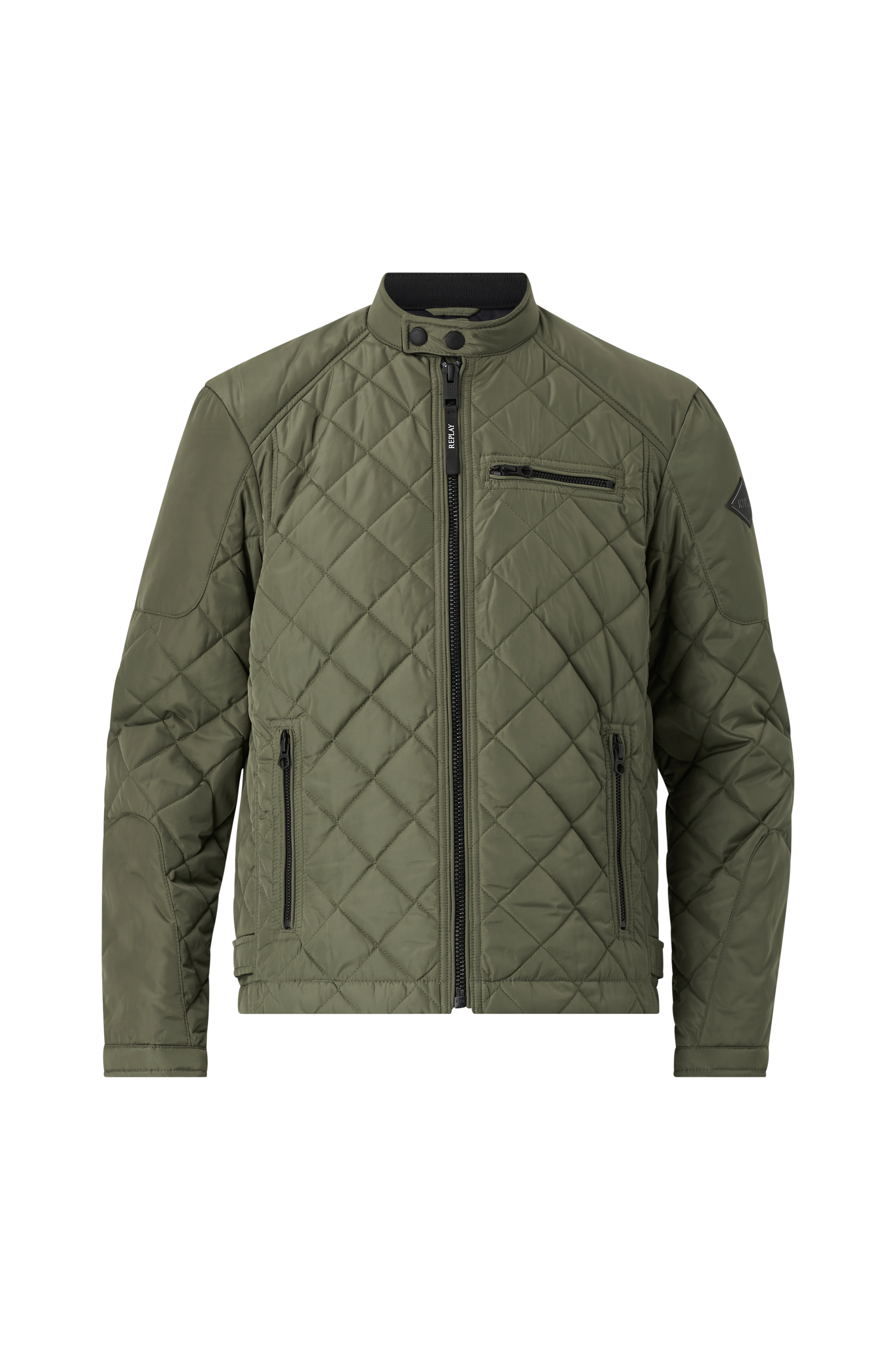 • Quiltet jakke med tynd polstring• Lynlås foran• Trykknapper i halsen• Tre lynlåse foran• En inderlomme• Trykknap ved manchetterne• Justérbar strop med trykknapper nede i siderne• Logo på ærmet• Længde: 65 cm i størrelse M