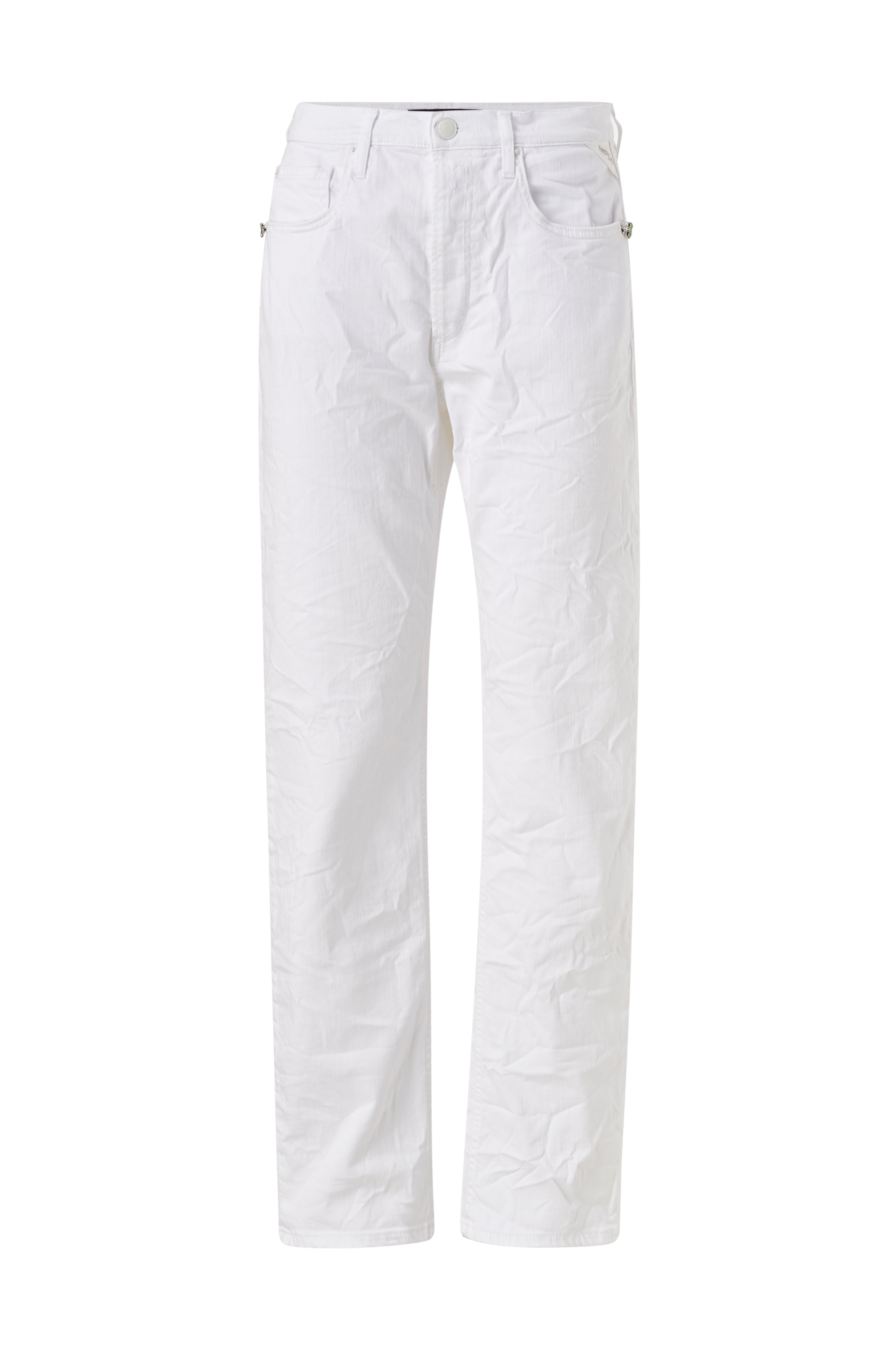 Jeans Maghy fra Replay. Model med vide, lige ben og høj talje. Tre forlommer og to baglommer samt knapper i gylpen. Stretchdenim.