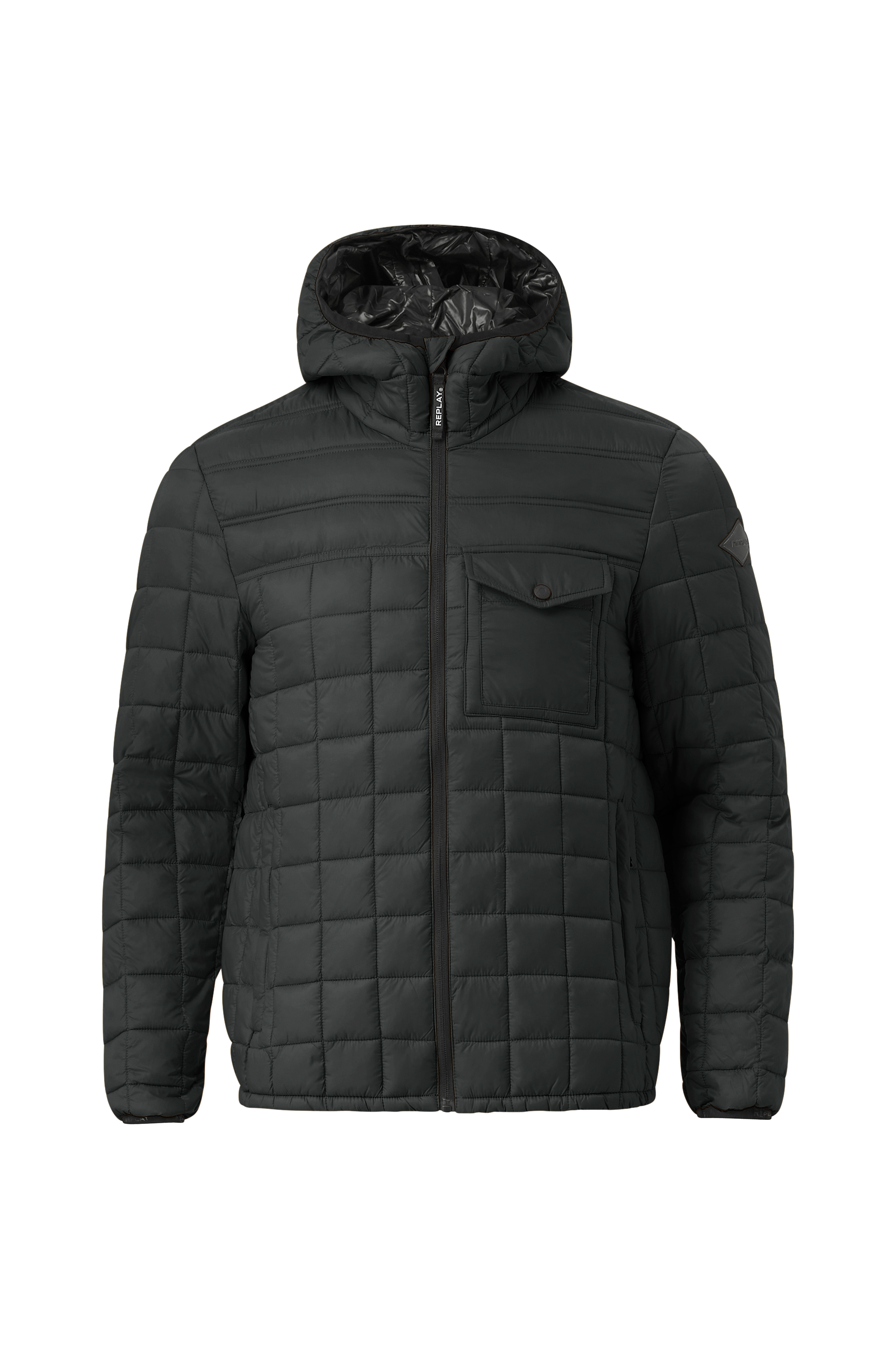 • Quiltet, foret jakke• Let model• Fast hætte• Lynlås• To lynlåslommer• En brystlomme med en trykknap• En inderlomme• Elastik ved manchetterne og ved nederste kant• Længde: 68 cm i størrelse M