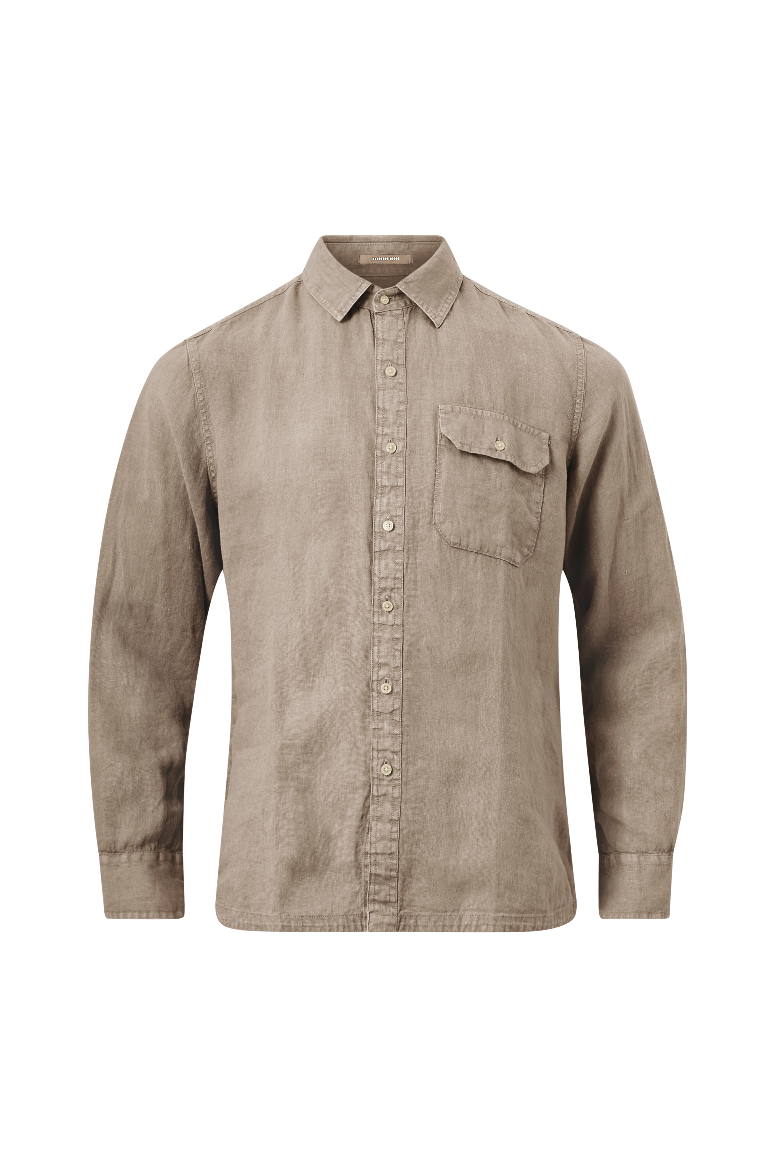 Skjorte i blød hørkvalitet. En brystlomme med knap. Manchet med en knap.