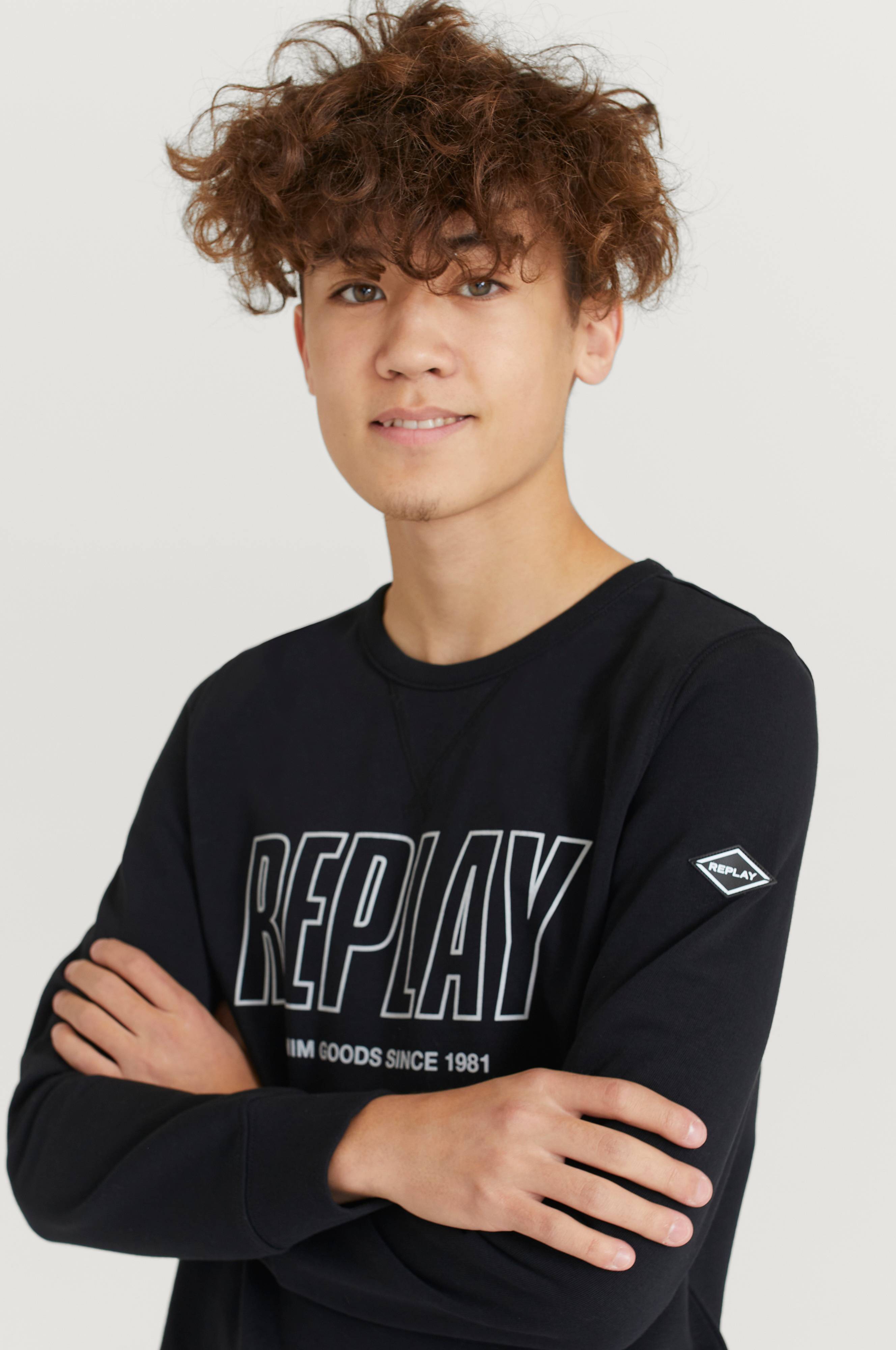 Sweater fra Replay med printet logo. Sweatshirten har rund hals med ribkant og snittet forneden er lige. Normal pasform og ribkant i ærmekant, kanten forneden og halsen.
