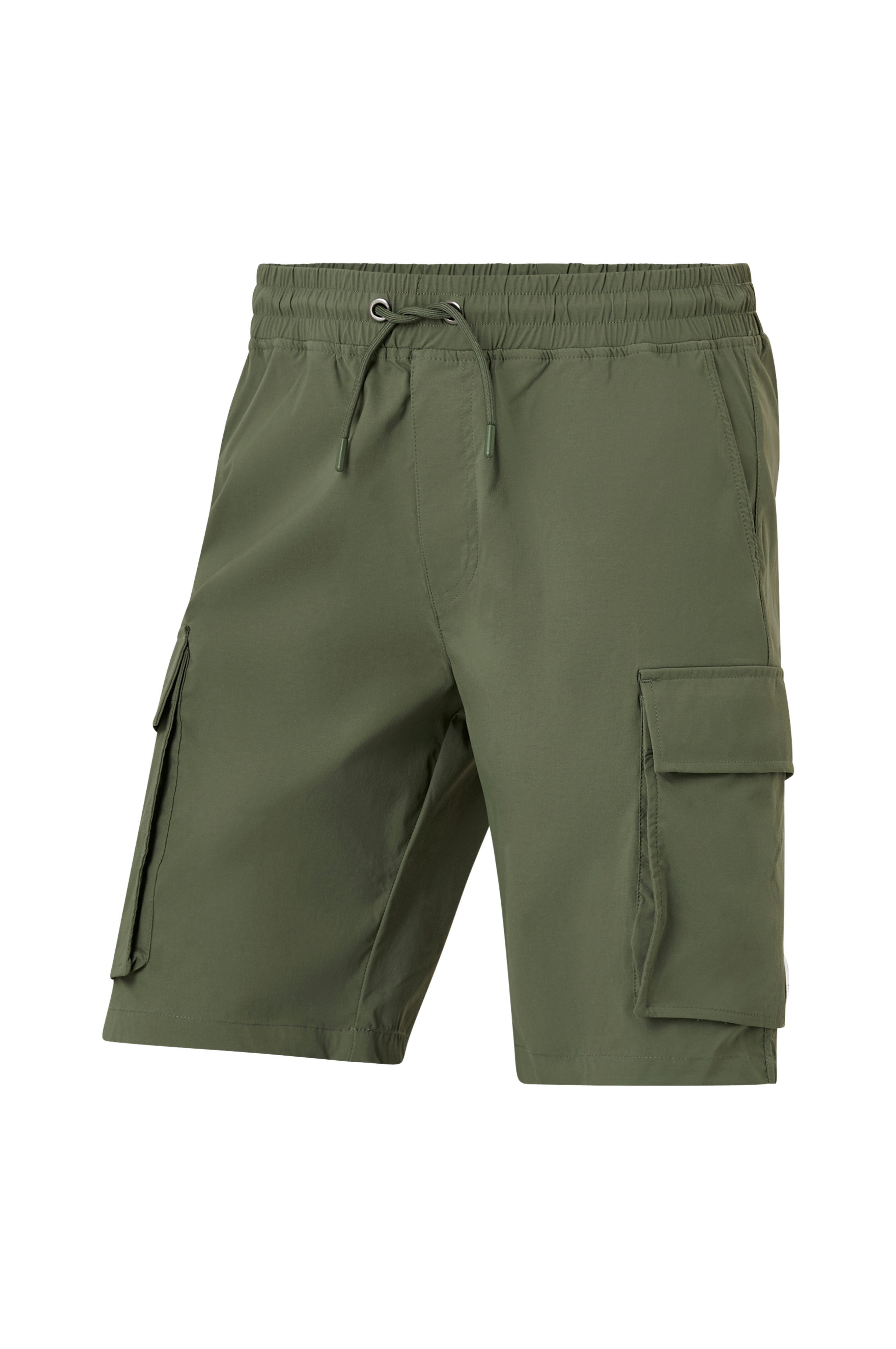 • Elastisk, vævet materiale• Elastisk talje med træksnørre• Sidelommer• To baglommer• To benlommer med trykknapslukning