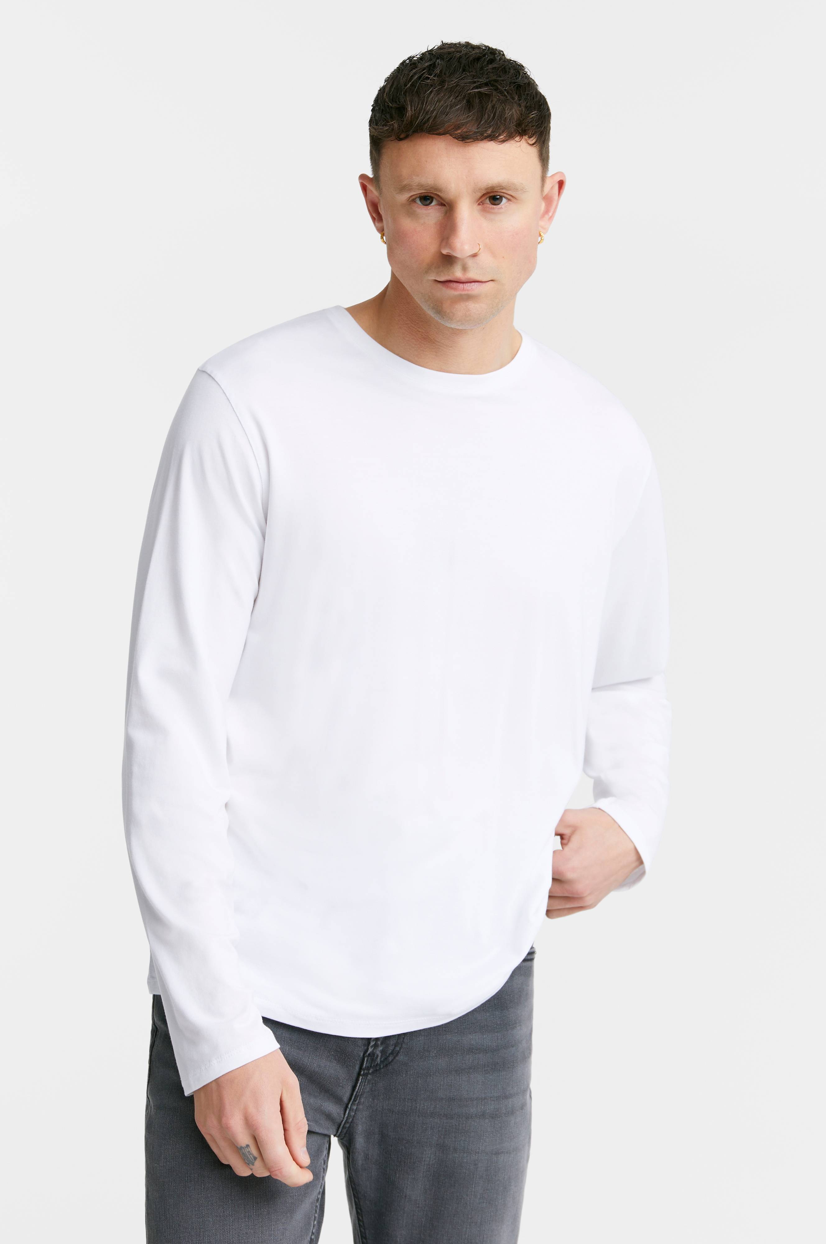 • Blød t-shirt i bomuldsviscose og bomuld med stræk• Langt ærme• Rund halsudskæring