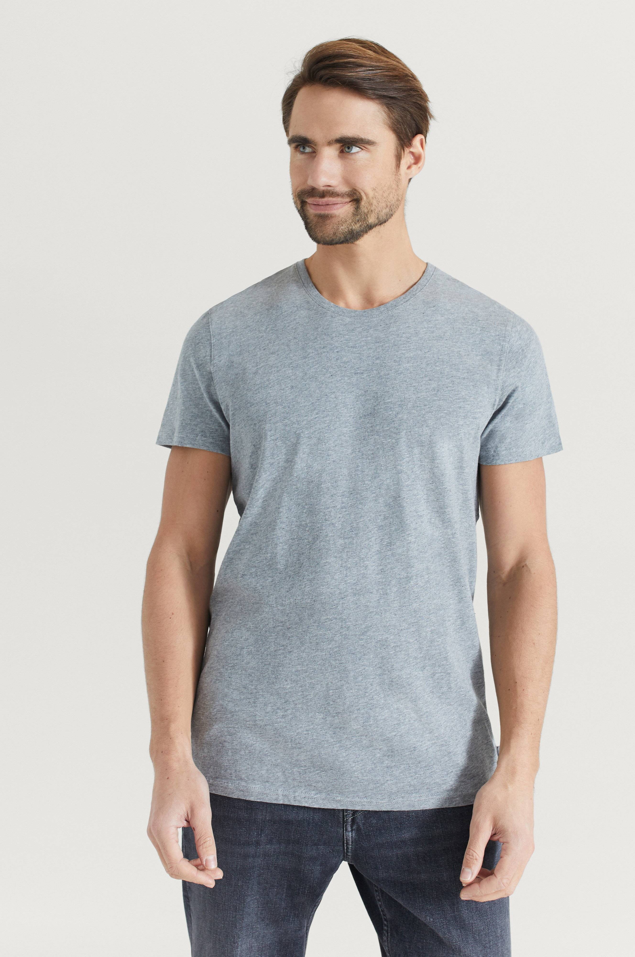 T-shirt Original R-neck Tee fra Resteröds i blød bomuldsjersey med smal ribkant i halsen. Længde 73 cm i str. M.