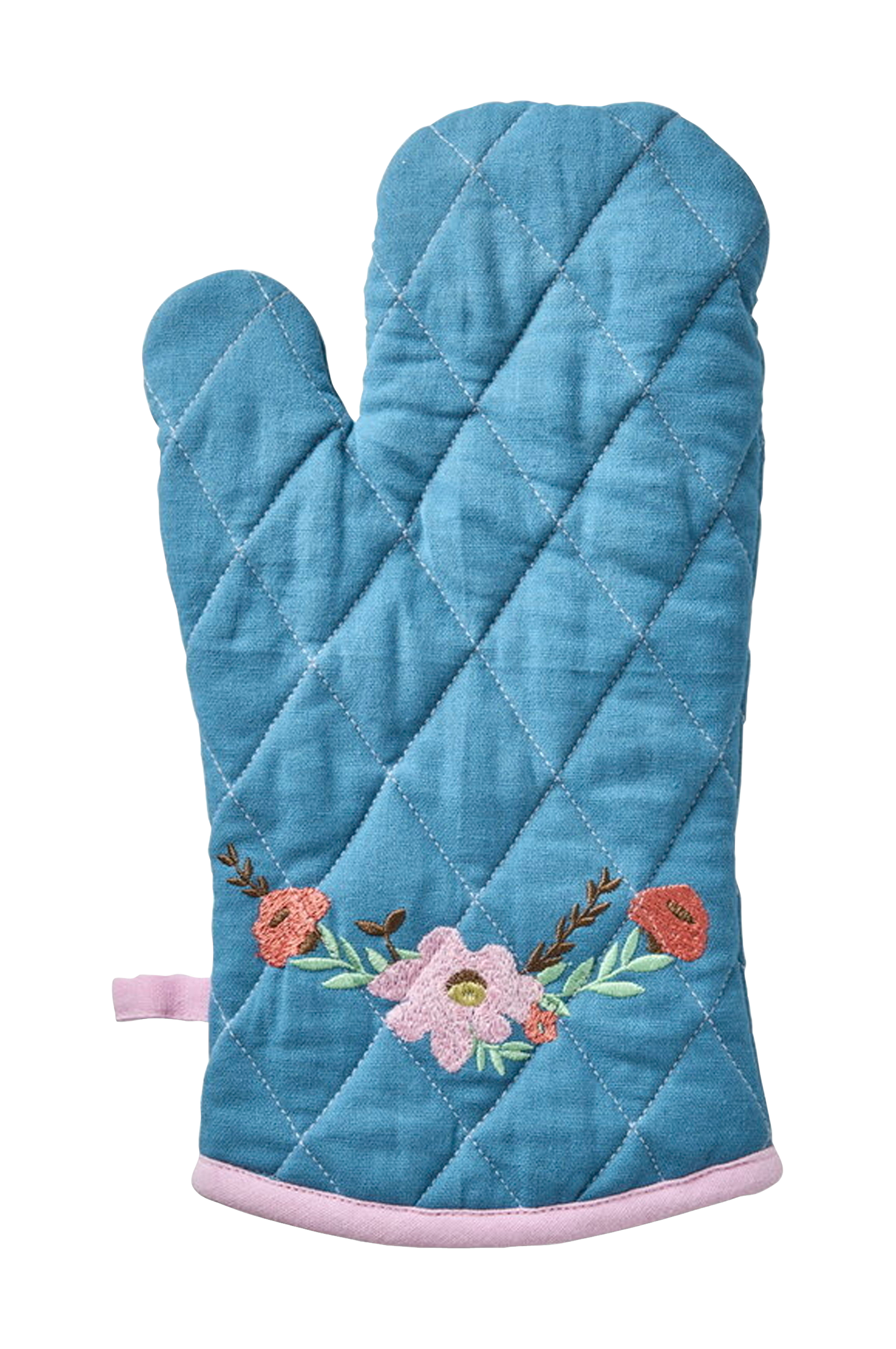 Sød ovnhandske med blomsterranke-design og detaljer - den vil helt sikkert gøre madlavningen sjovere! Ovnvanten er lavet af 100 % bomuld og kan vaskes i maskinen ved 40 °C.