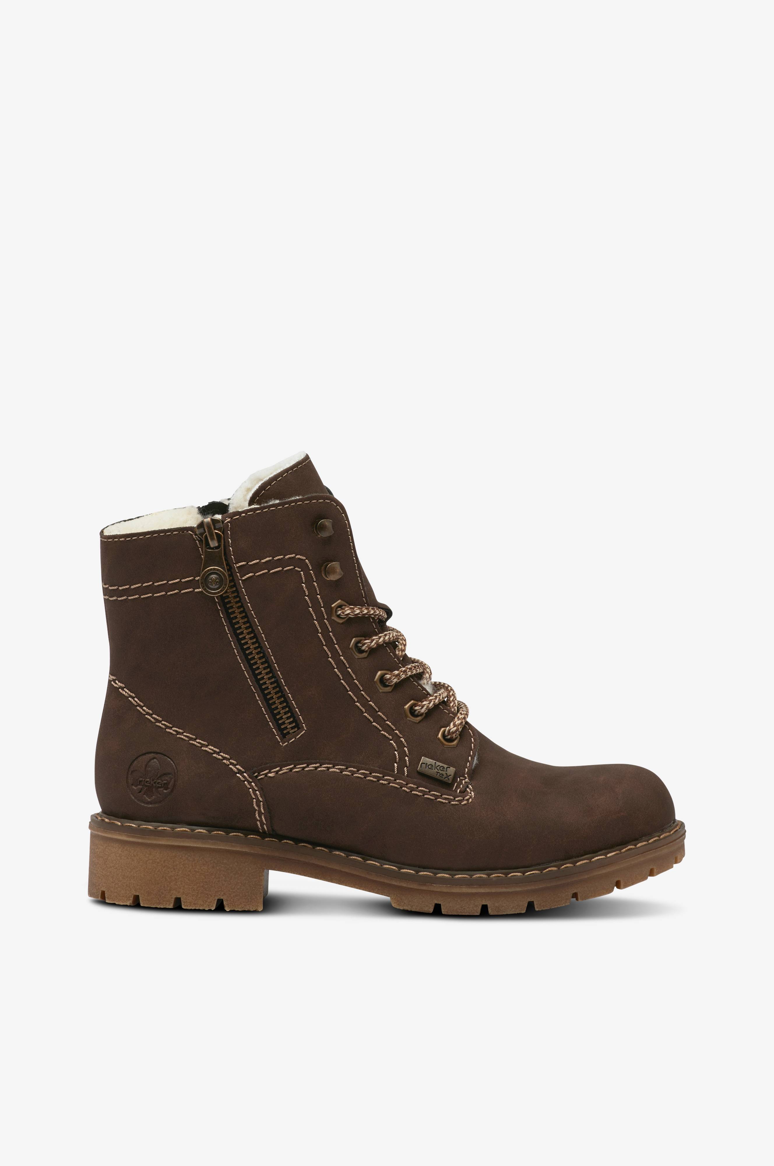 • Varmt foret model i ruskindsimitation• Snøring med spændelukninger øverst• Lynlås på indersiden af skaftet• Dekorativ lynlås på ydersiden• Grovmønstret, skridsikker sål• Hælhøjde: 3,5 cm