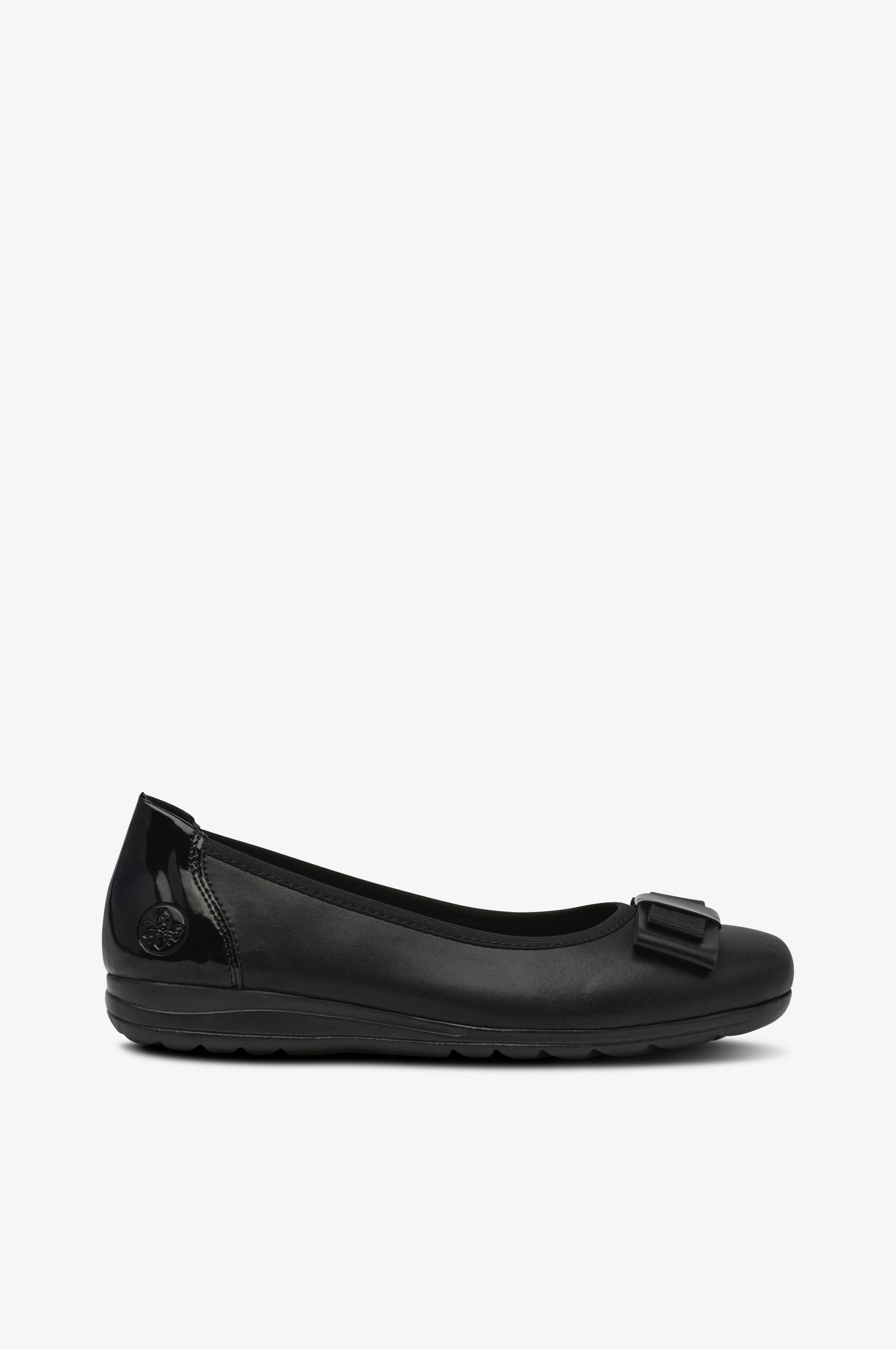 • Ballerinasko med lav wedgehæl• Øvredel i læder• Lakeret, blankt parti i kunststof omkring hælen• Dekorativ, vævet detalje forrest på foden• Ydersål i gummi• Blødt polstret, stødabsorberende antistress-indersål i læder
