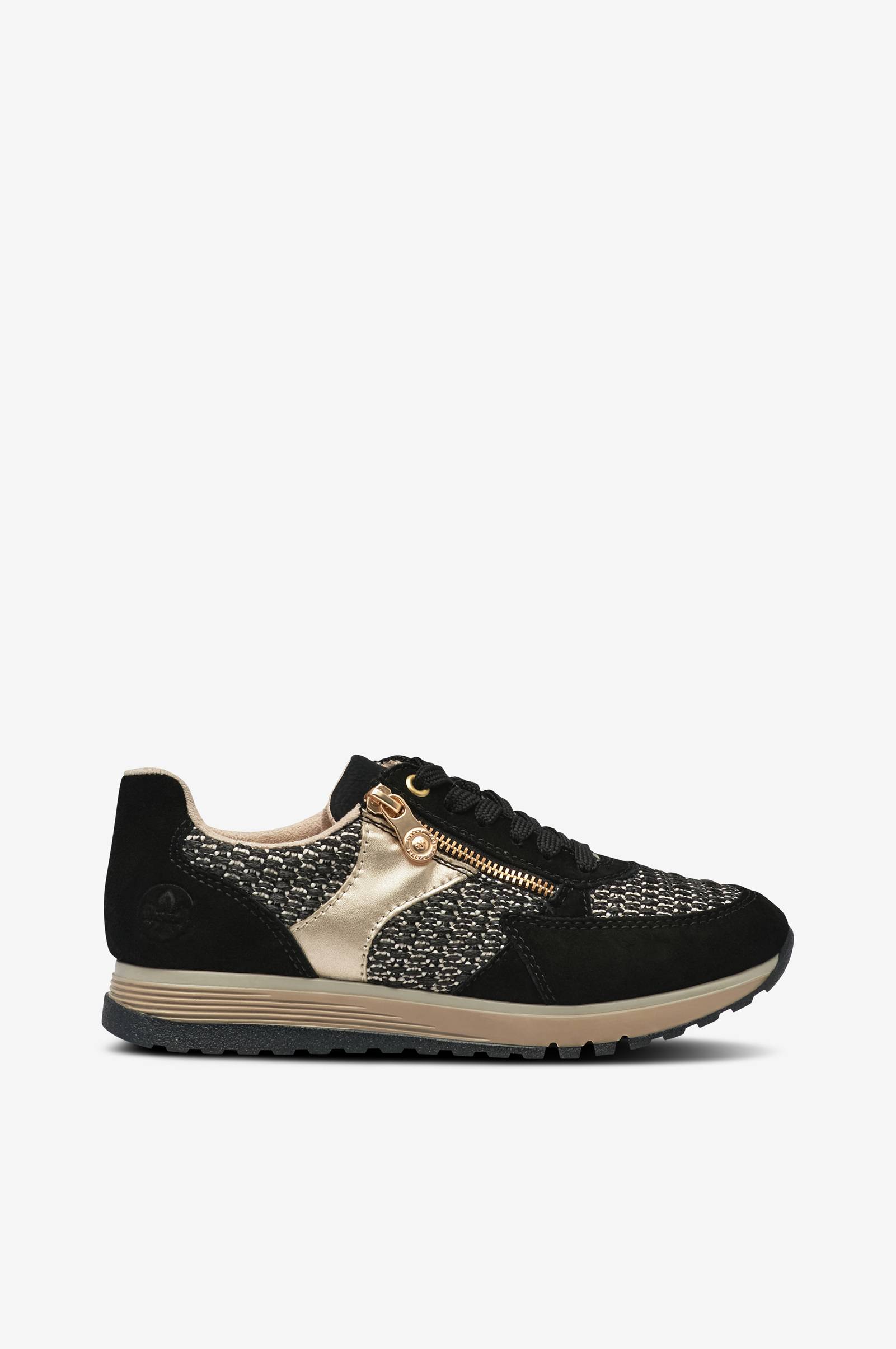 • Kondisko i læder og tekstil• Snøring på toppen• Lynlås i den ene side• Tekstilforing• Blød polstret, udtagelig indersål• Ydersål i gummi