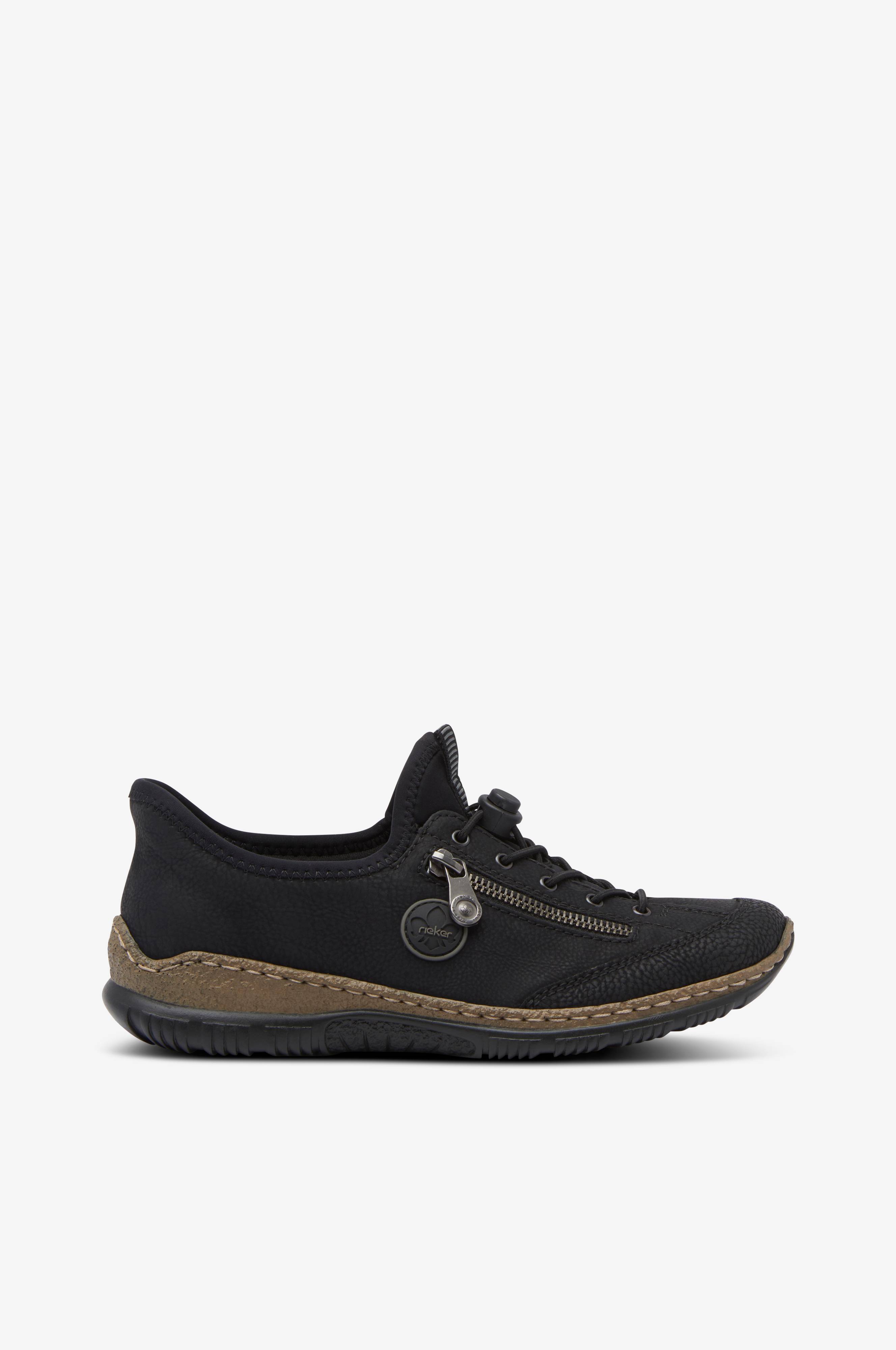 • Bløde, bekvemme sneakers• Øvredel i kunststof• Elastisk hurtigsnøring med stopper• Dekorativ lynlås på ydersiden• Tekstilforing• Blødt polstret Antistress-indersål, der former sig efter foden• Fremstillet med vegansk lim